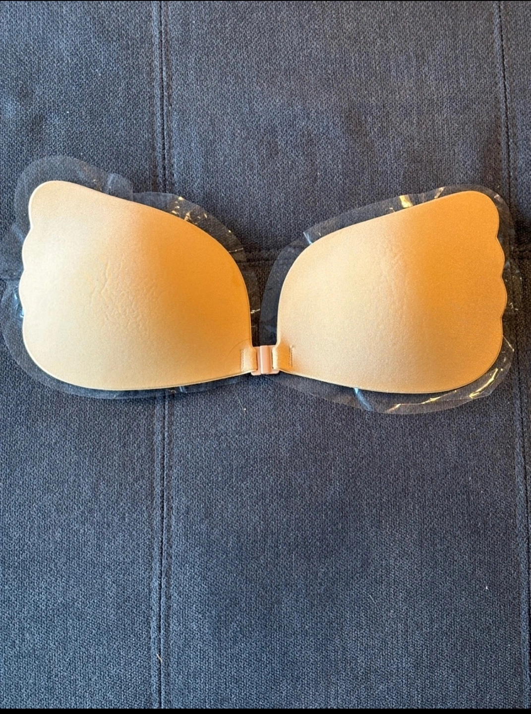 Beige strapless, backless bra. Self-adhesive cups. Size C. Worn for a couple hours and cleaned very dry well afterwards. Pickup near Sherbourne and Adelaide or some TTC stations. Thanks!