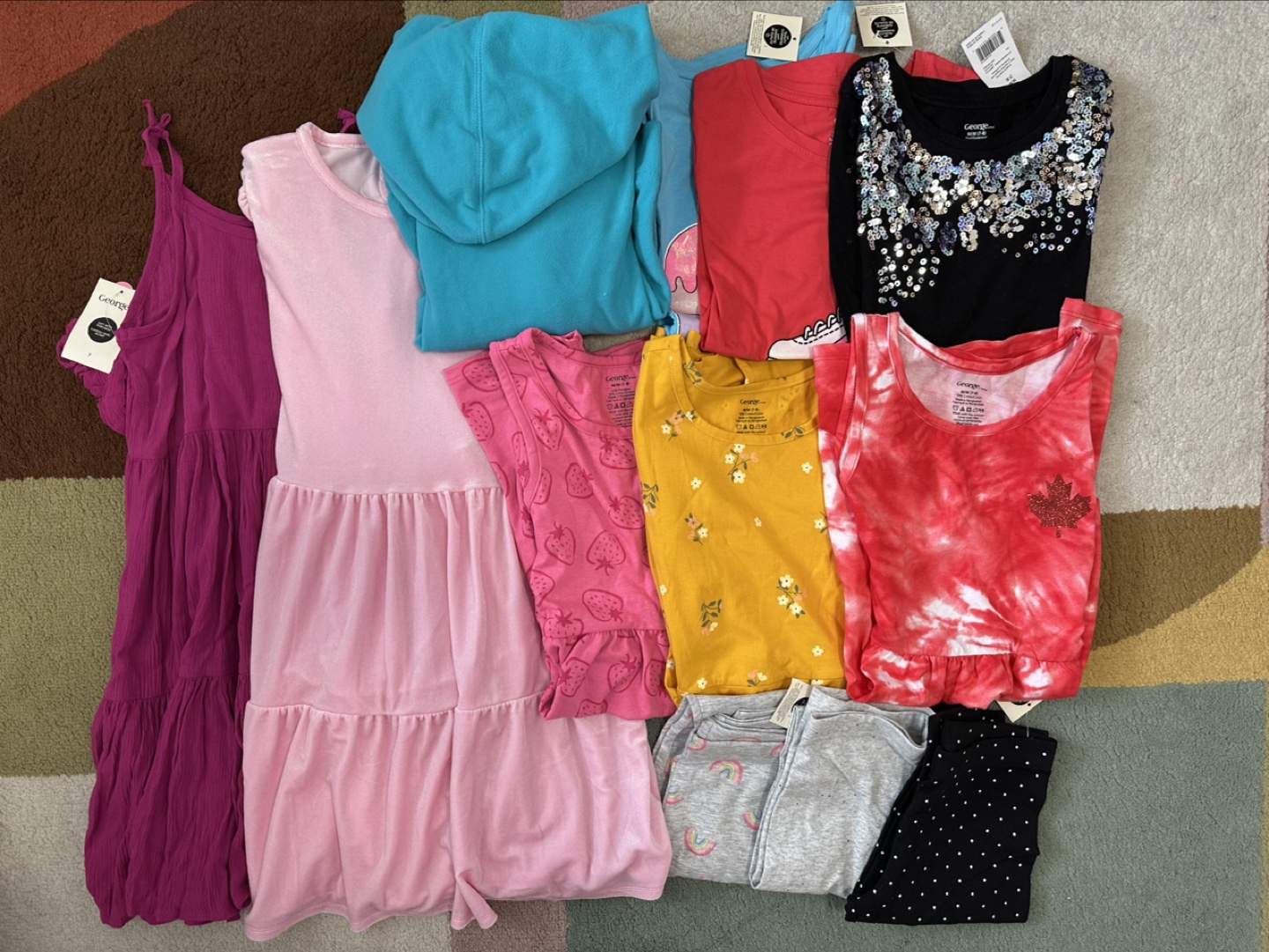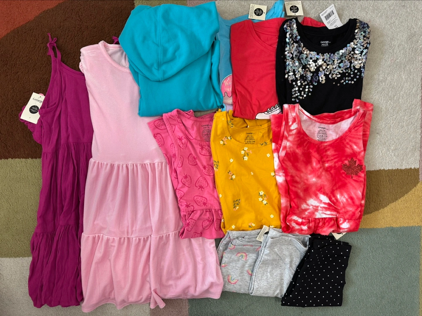 Bundle includes dresses, tops, and leggings. Various colours and patterns. All new and good for everyday use.