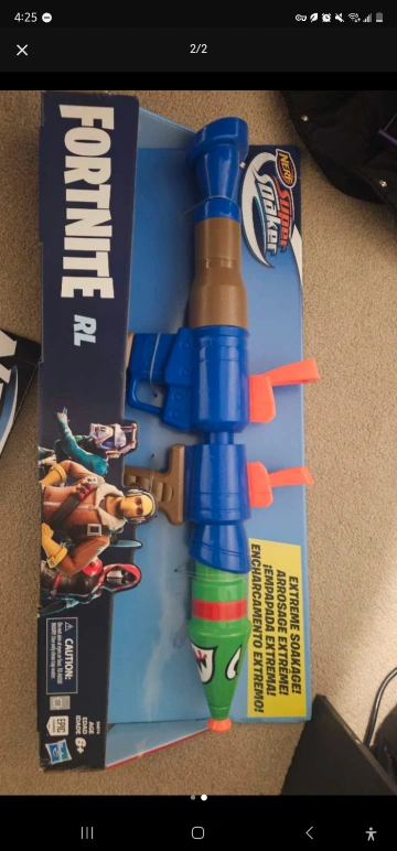 Two water blasters. One is a Nerf Roblox Adopt Me! Bees blaster, orange and yellow. The other is a Fortnite RL Mega Tracker, blue and green. Both are new in box.