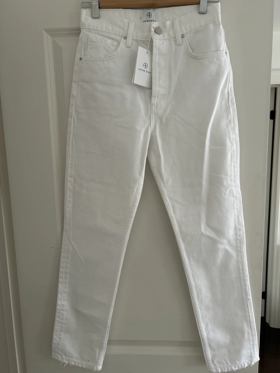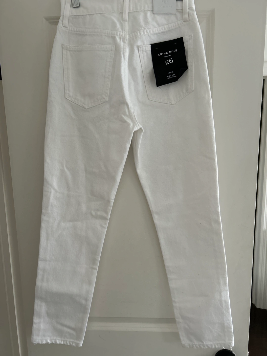 White cropped jeans. Size 26. New with tags. Raw hem. Retail for $230. Perfect for summer.