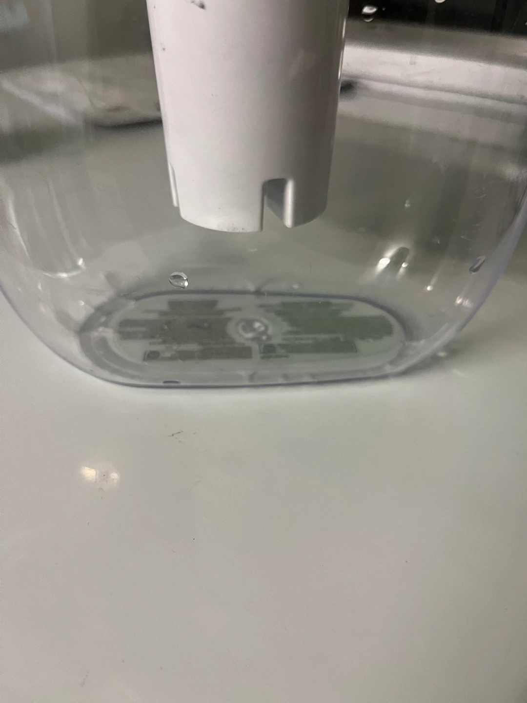 Large capacity water filter pitcher. White lid and handle. Clear plastic body. Some cosmetics scratches. Used but in good condition.