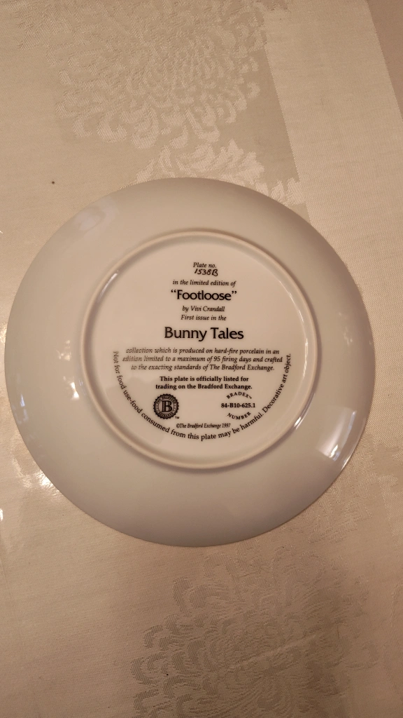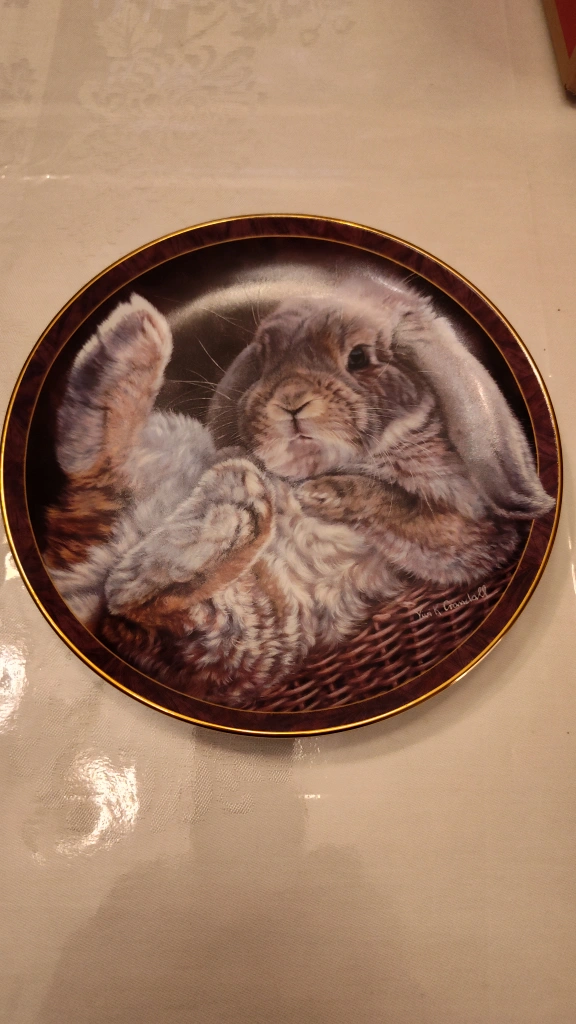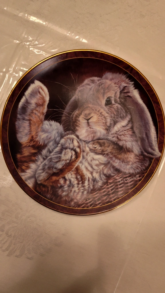 Just in time for Easter. Collectible plate featuring a cute floppy eared bunny. Part of the Bunny Tales collection. Hard-fire porcelain. Vintage 1997. It's in excellent condition with intricate dealing. Asking $45. obo. no box. Pick up in Lisgar area of Mississauga.