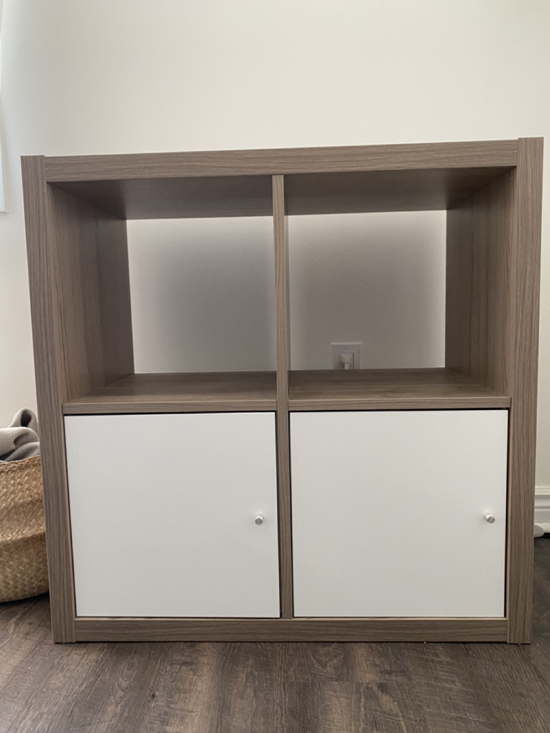 Shelf unit with doors, white stained oak effect, 30 3/8x30 3/8 " (77x77 cm) - in perfect condition.