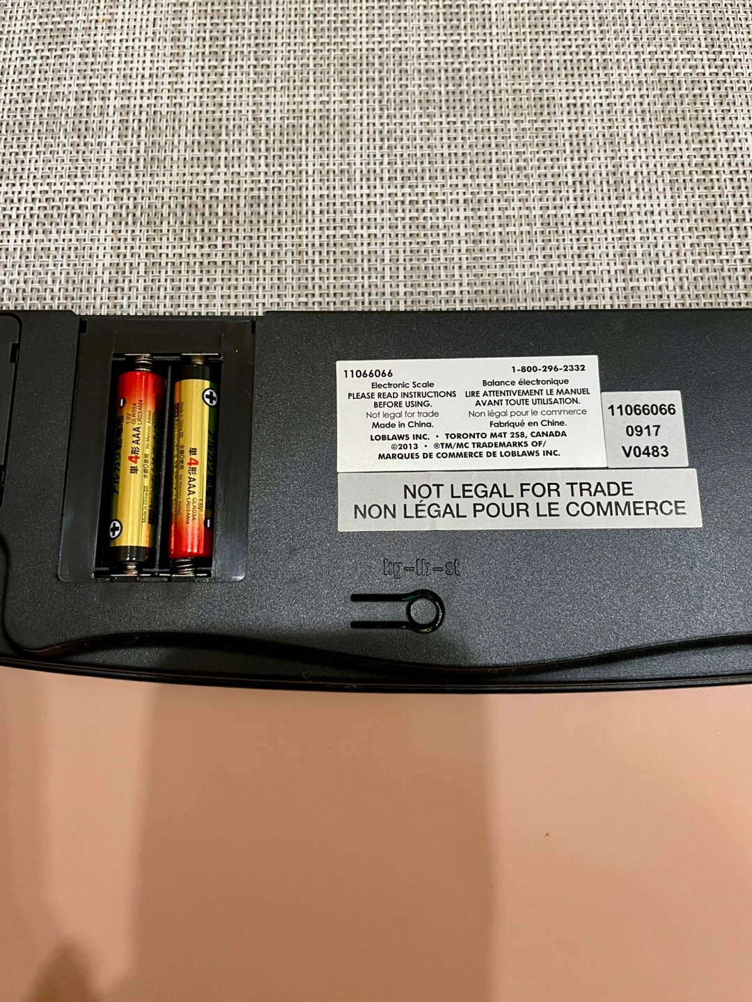 It requires 2 AAA batteries (included) and measures in both kg and lb.