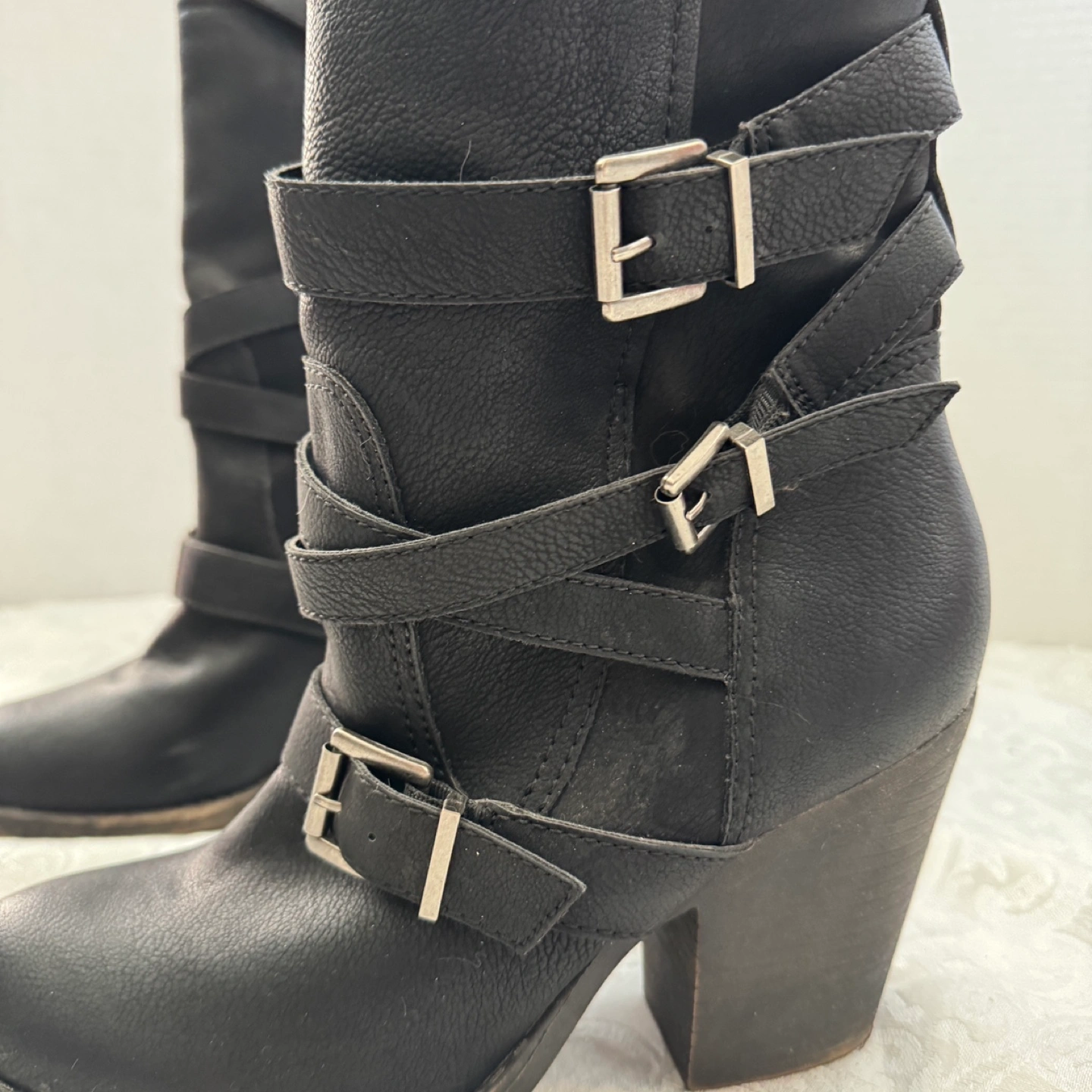 Black vegan leather ladies boots mid calf length, size 8.5M