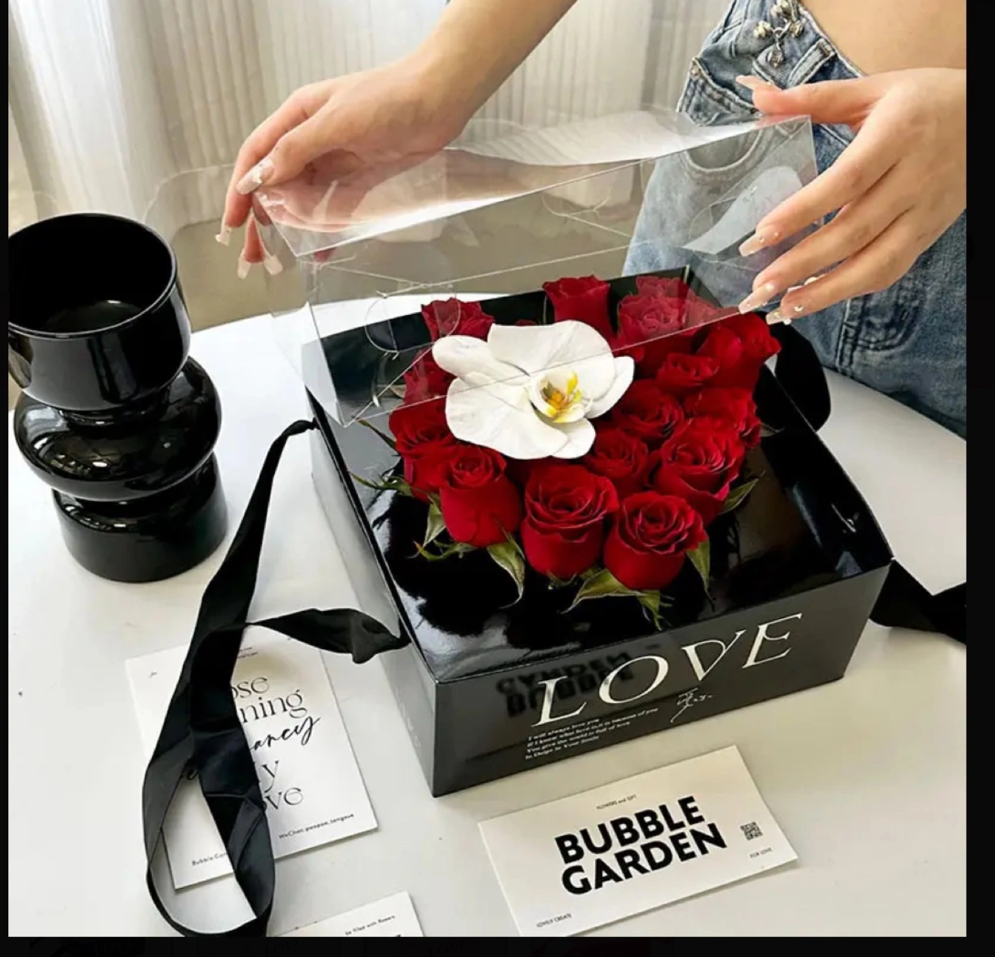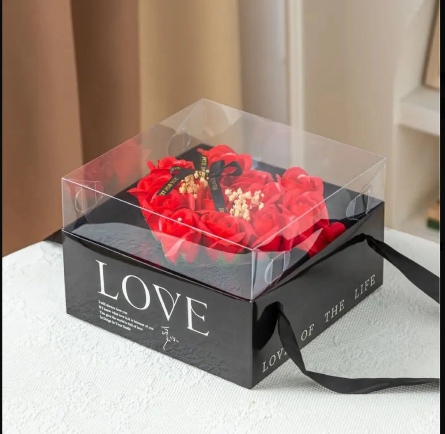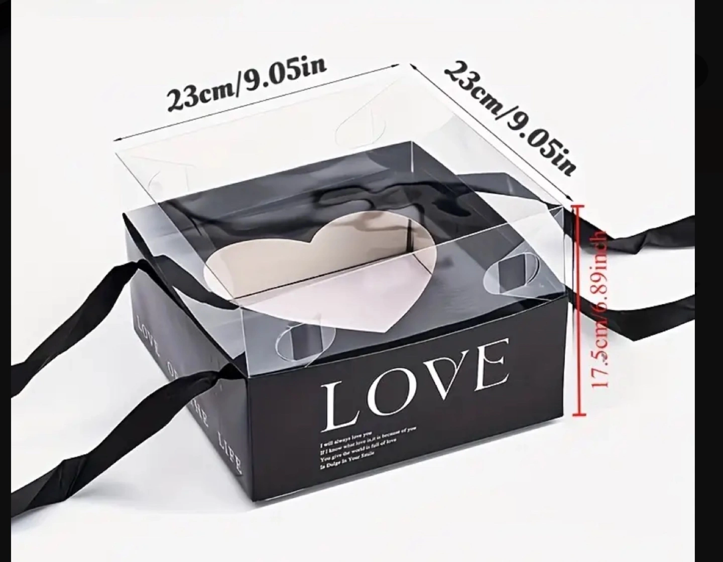 Beautiful black gift box, perfect for gifting. Measures approximately 23cm x 23cm x 17.5cm.