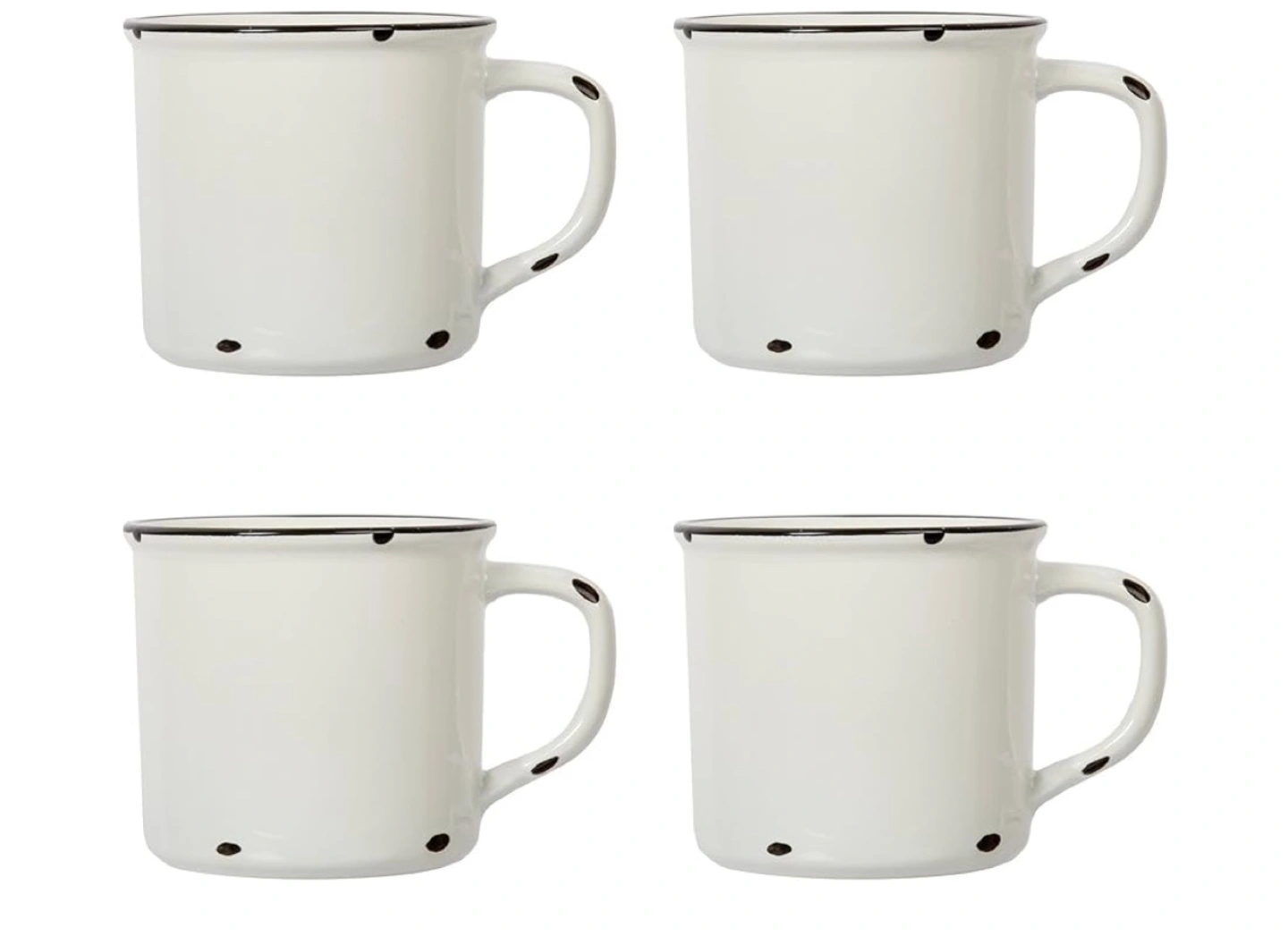 Set of 4 Enamel-Style Mugs, White with Black Rim