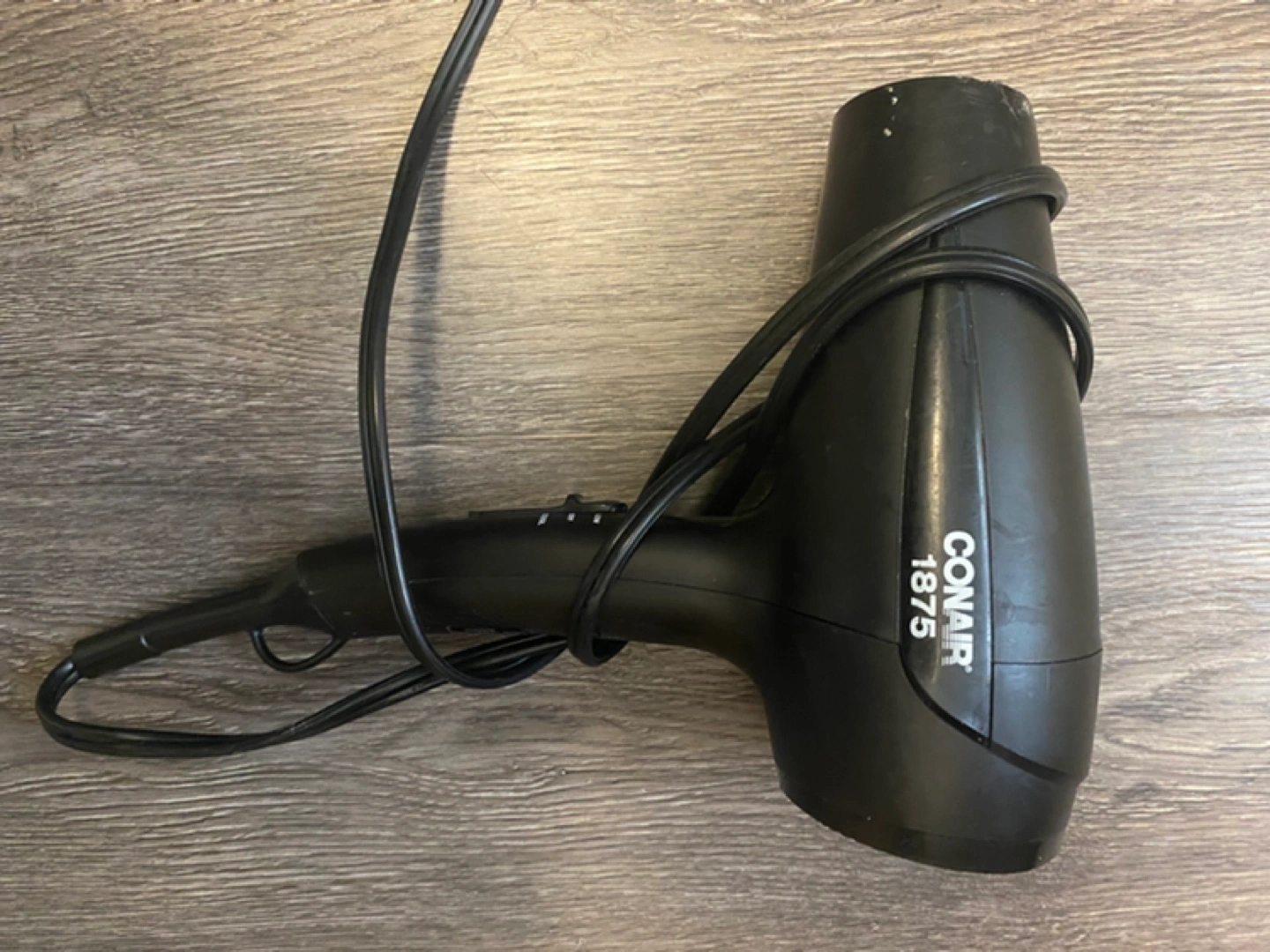 Black Conair hair dryer, model 1875. Includes power cord. Pre-owned. π