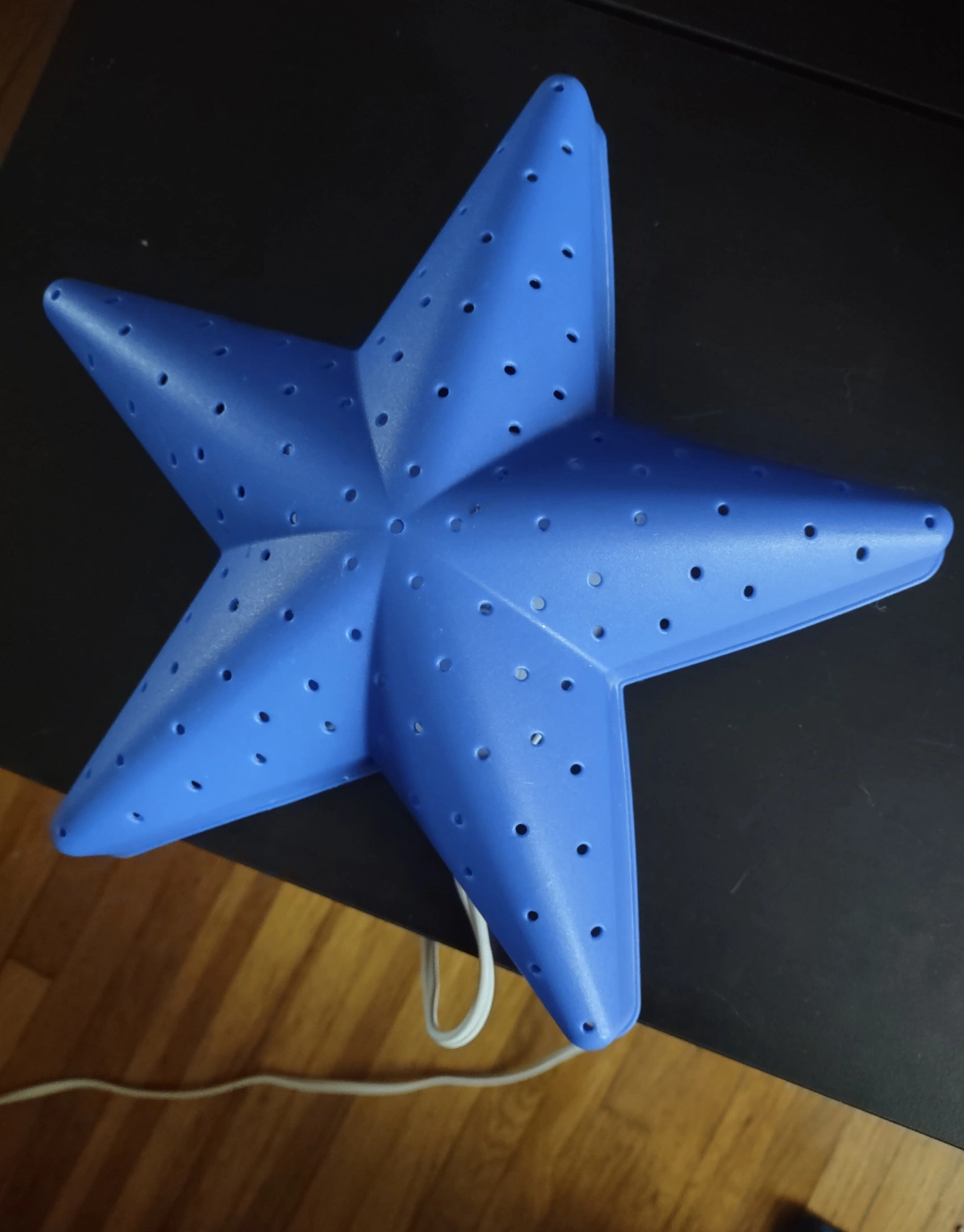 Adorable blue star-shaped light. Features small holes throughout. Comes with a cord and able to mount easy to the wall