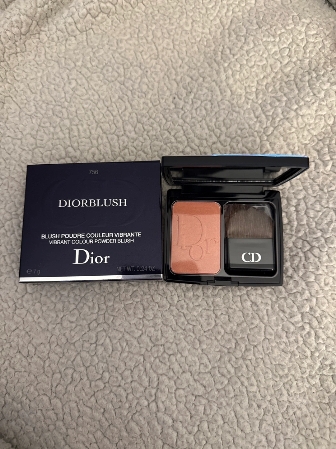 Dior blush powder. New. Color # 756. Includes brush and mirror. Net weight 0.24 oz.