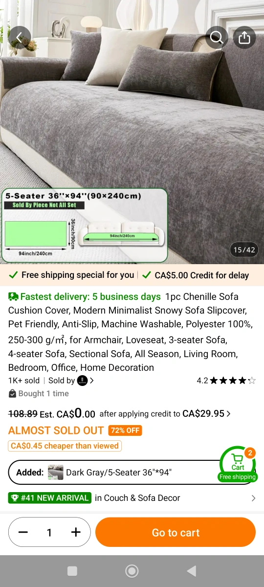 Modern minimalist washable sofa cover. Pet friendly. . Non-slip backing. Machine or hand washable. 100% New, dark Gray
