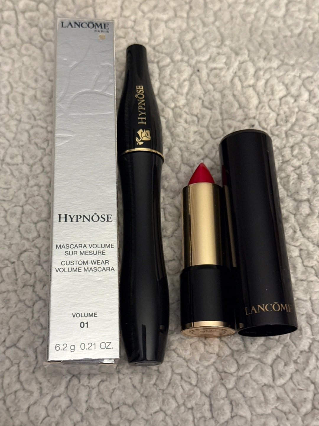 Lancôme Hypnôse mascara, volume 01 Black. Includes Lancôme L'Absolu Rouge lipstick. New, #132 Caprice