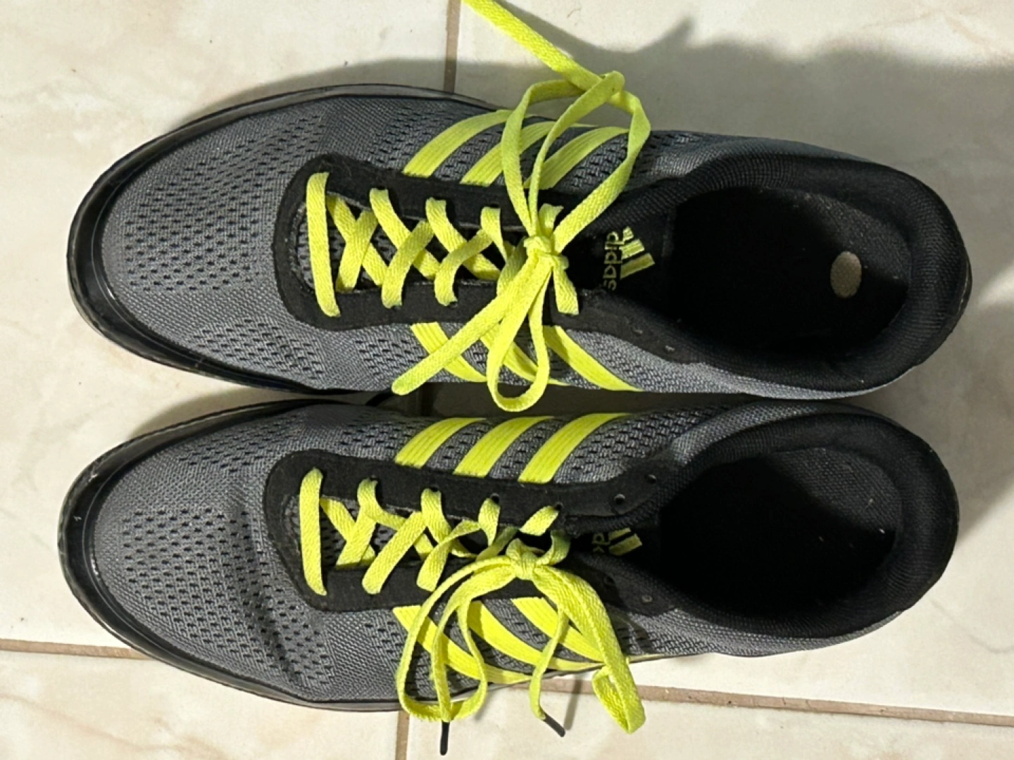52Grey and neon yellow running shoes. Lace-up closure. Breathable fabric. Good condition.