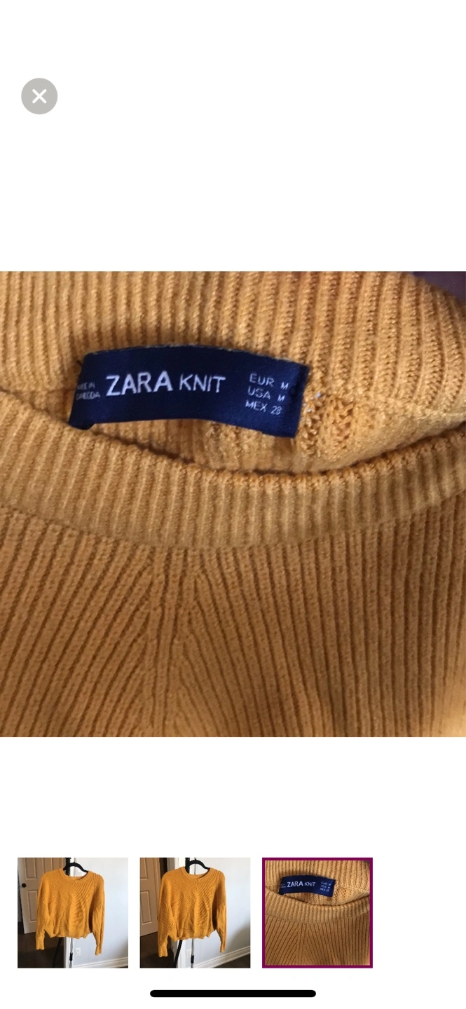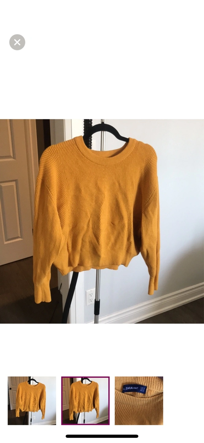 52Women's cropped, mustard yellow sweater. Ribbed knit. Long sleeves. Size Medium.