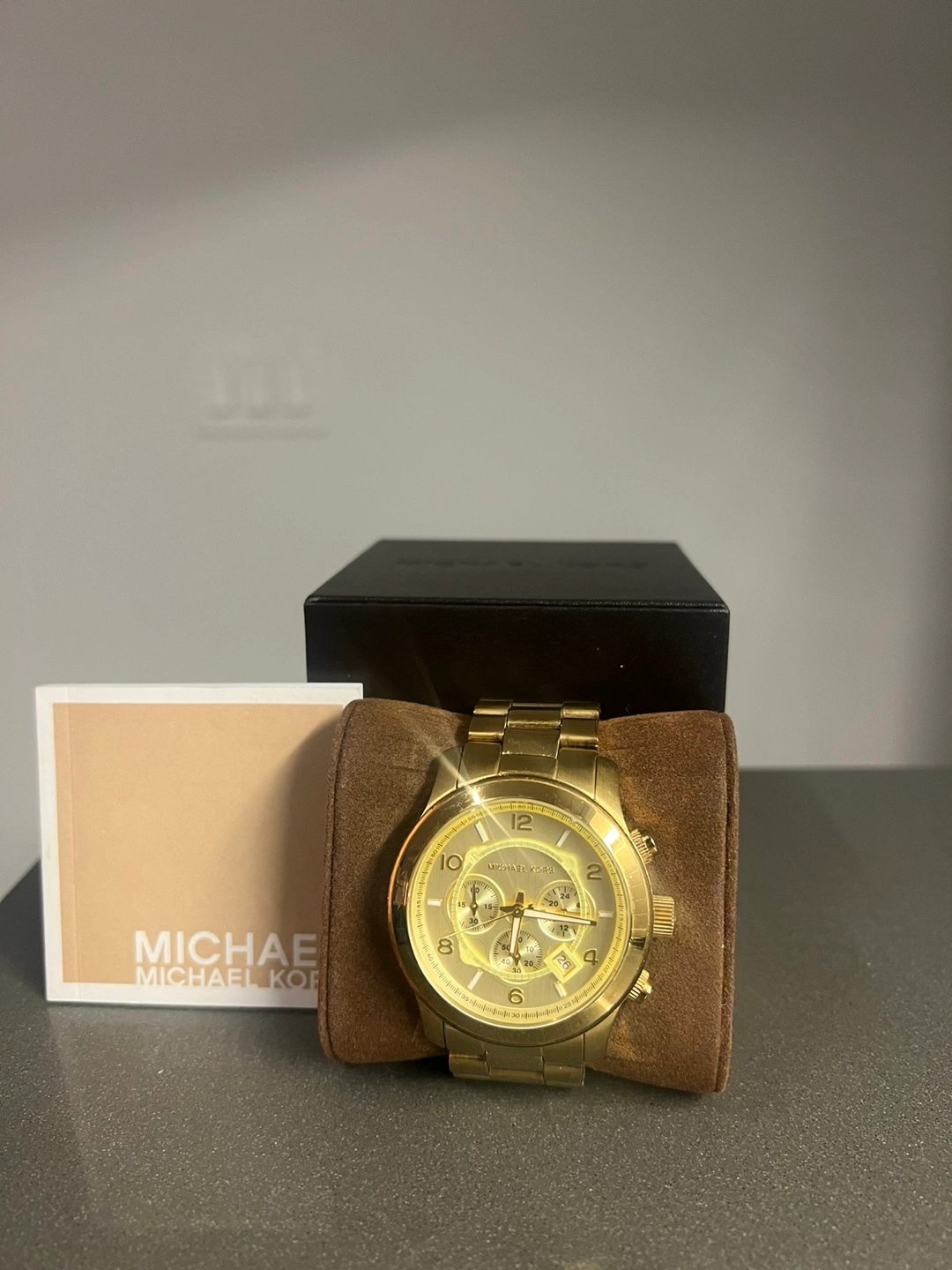48Men's gold-toned watch. Chronograph functions. Stainless steel bracelet. Comes with original box and paperwork.