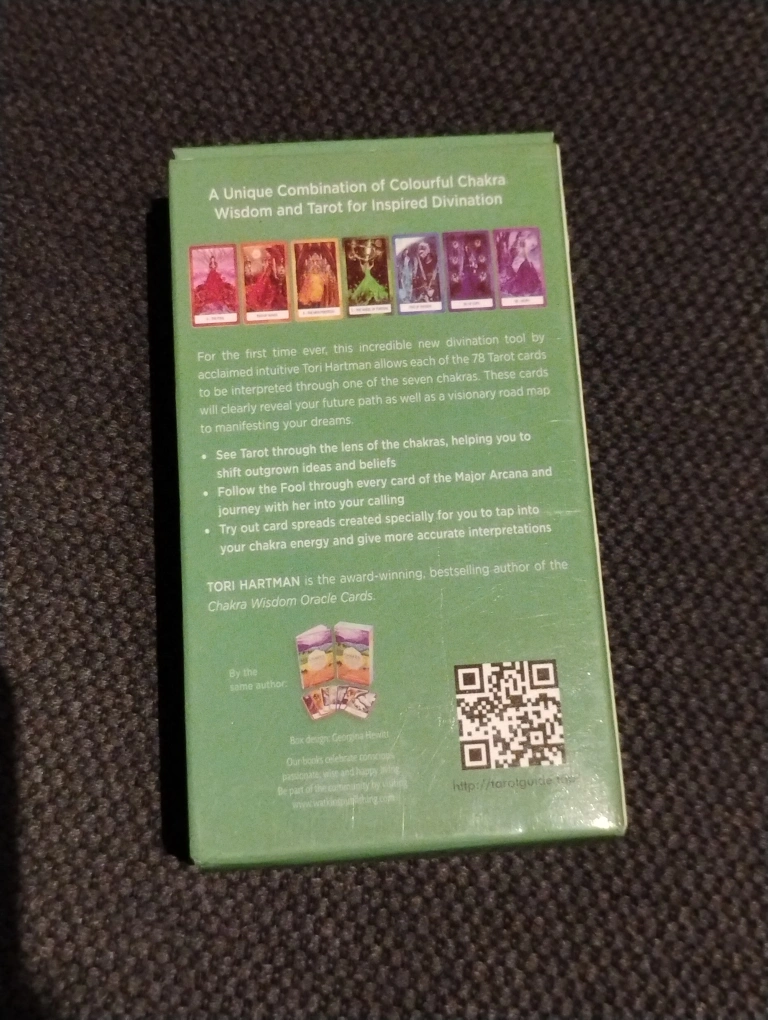 Unique combination of colourful chakra wisdom and tarot. 78 cards. Interpret through the lens of chakras. Helping you manifest dreams. Follow your path and calling. Try out card spreads. More accurate interpretations. Award-winning, bestselling author.
