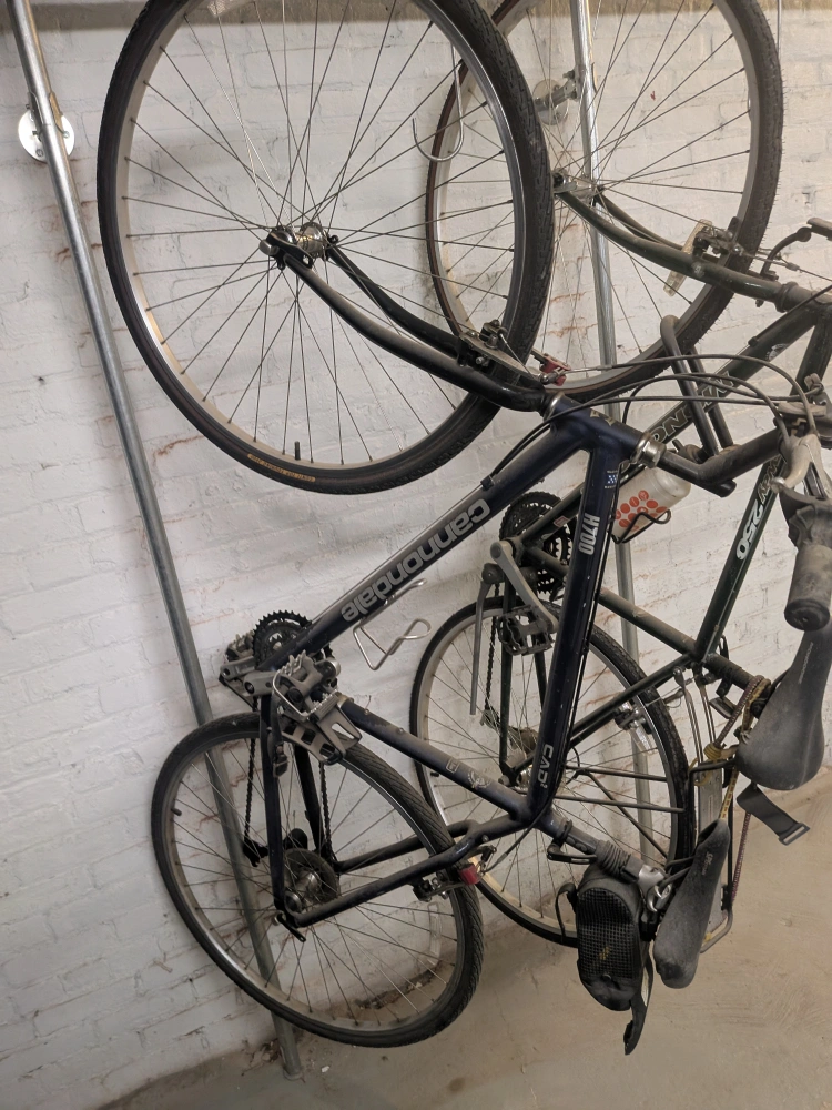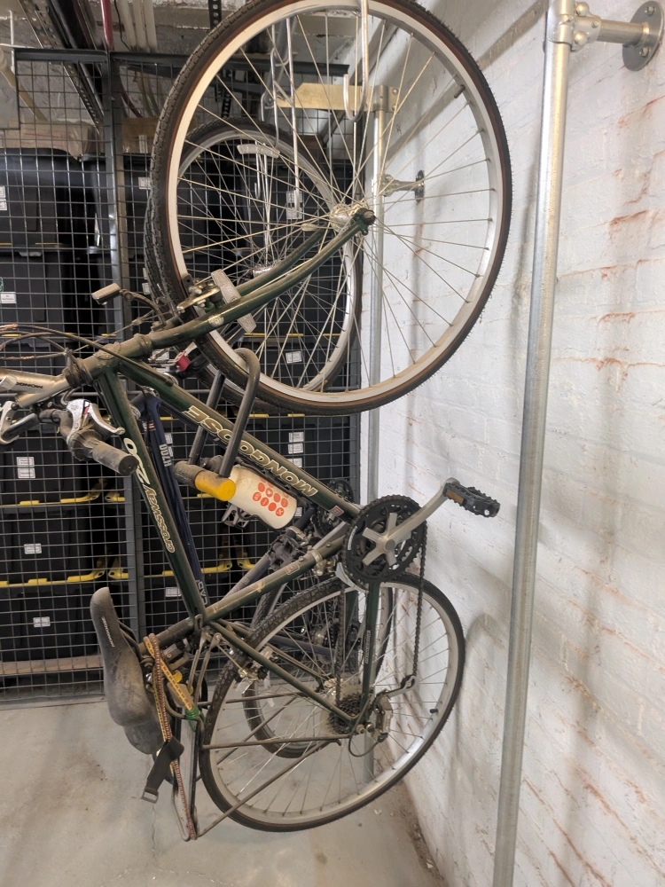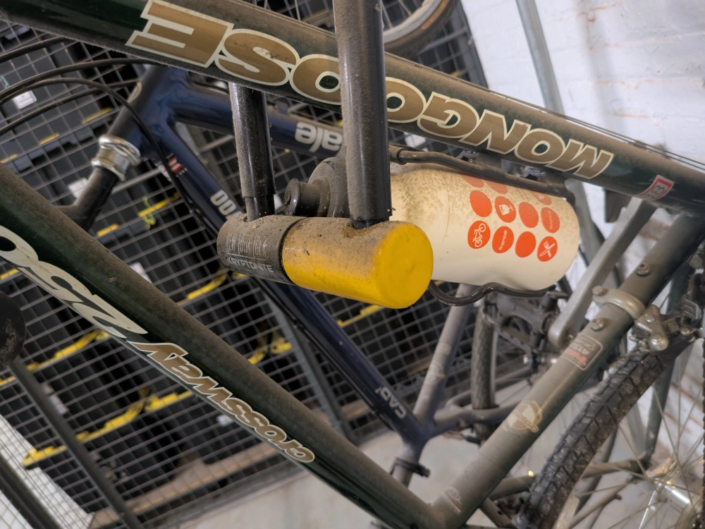 Used Mongoose women's hybrid bicycle. Great for city riding. Shows wear from use. Needs new tires. Includes lock that needs to be cut off. Was left when occupant moved out