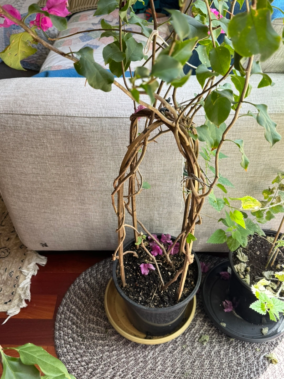 Bougainvillea plant in decorative trellis pot