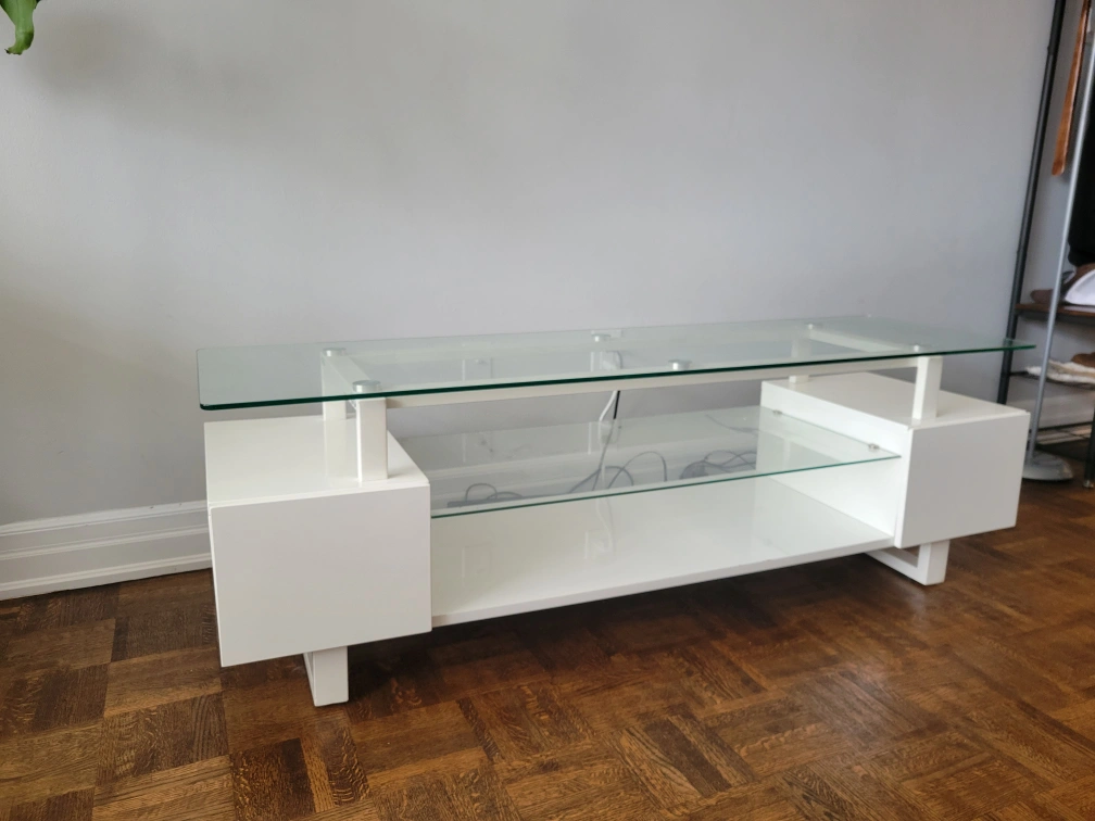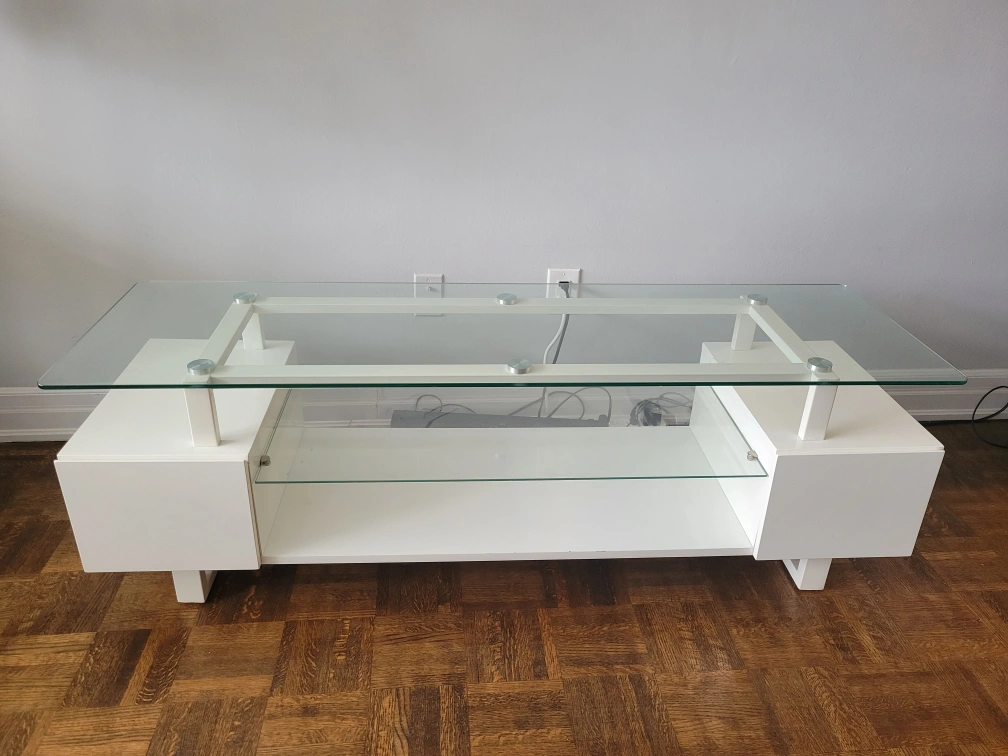 TV Console White Glass Top