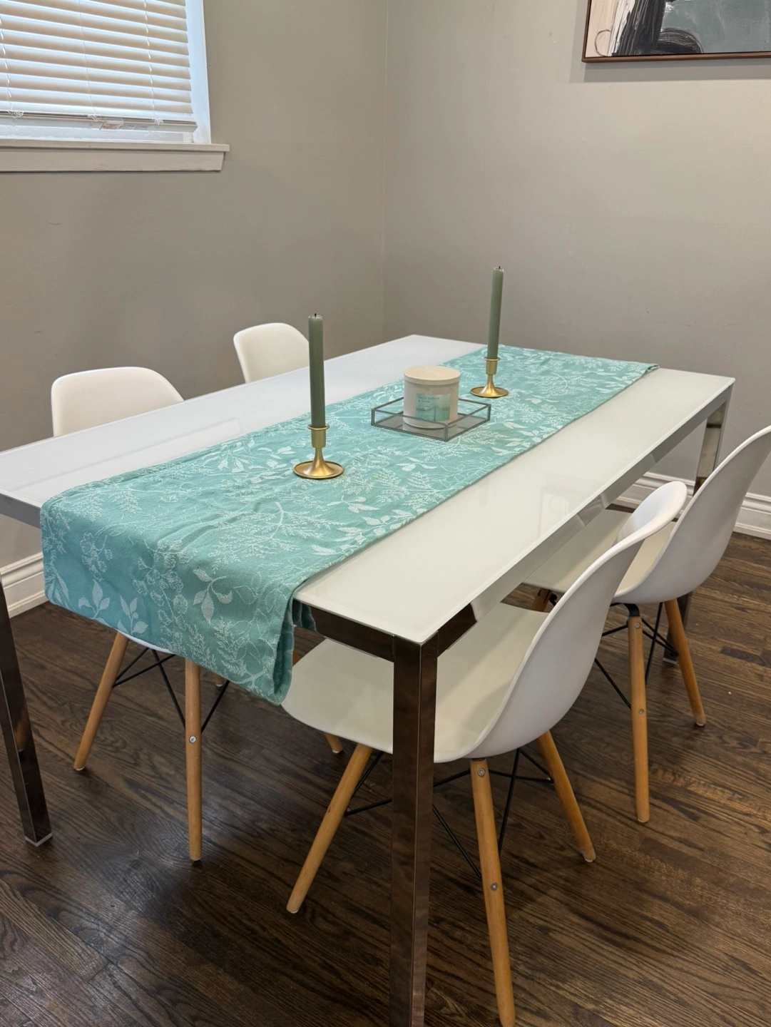 💚Modern Glass Dining Table with Four Eames-Style Chairs