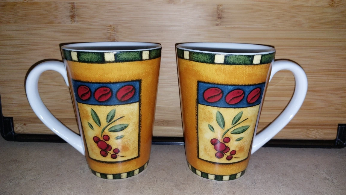 Vintage Set of 2 Coffee mugs Sylvie Bourbonniere Cafe Designer Coffee Mug Cup MSC Joie de Vivre Bakery Artist