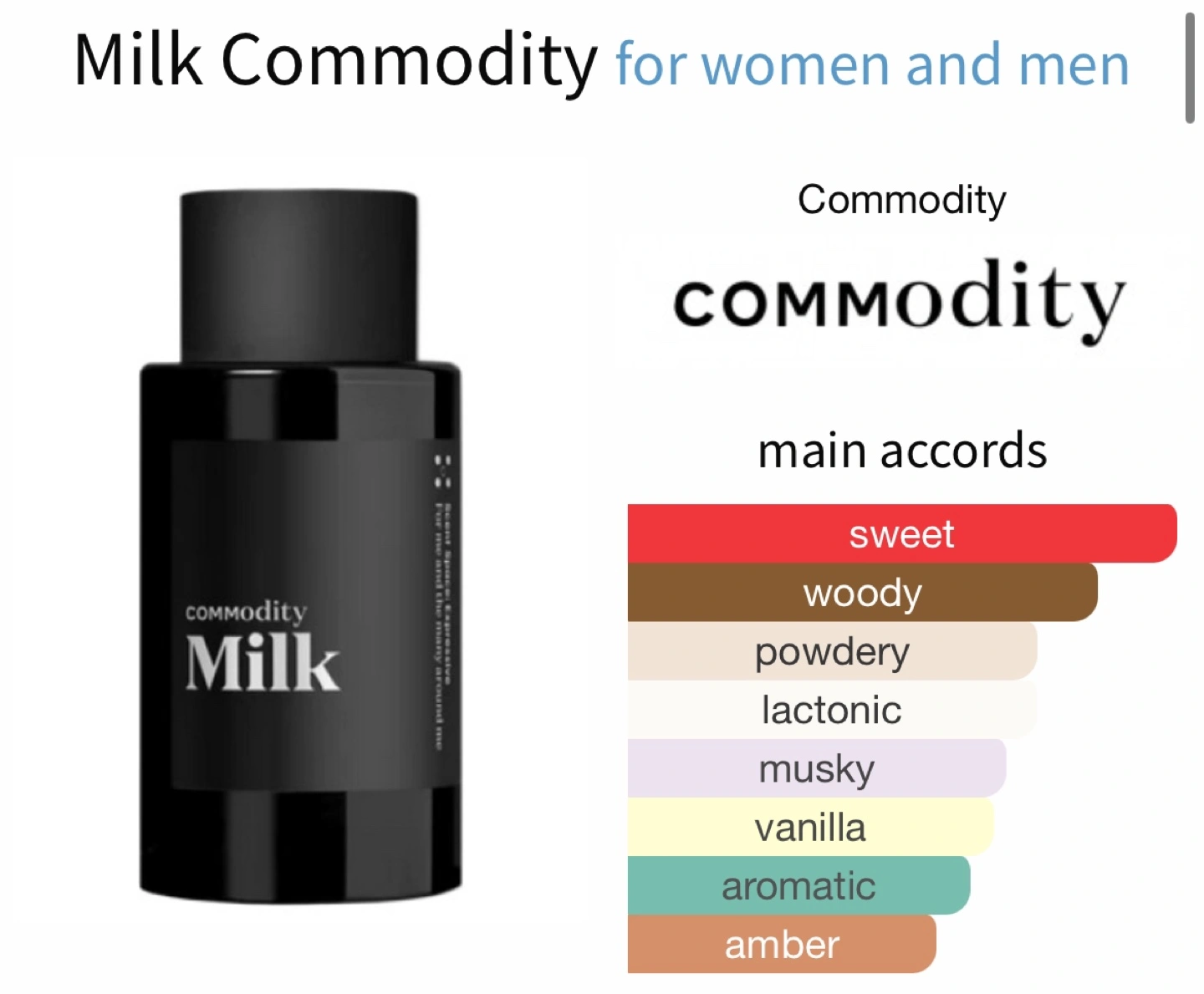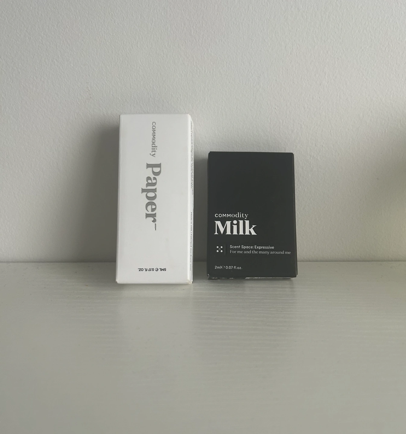 669- 5ml travel spray of Commodity Paper Personal - 2ml sample spray of Commodity Milk Expressive Love these scents, but I now have the bigger bottles. Both have been sprayed just once to test. **Downsizing my perfume collection! Check out my other listings for more**