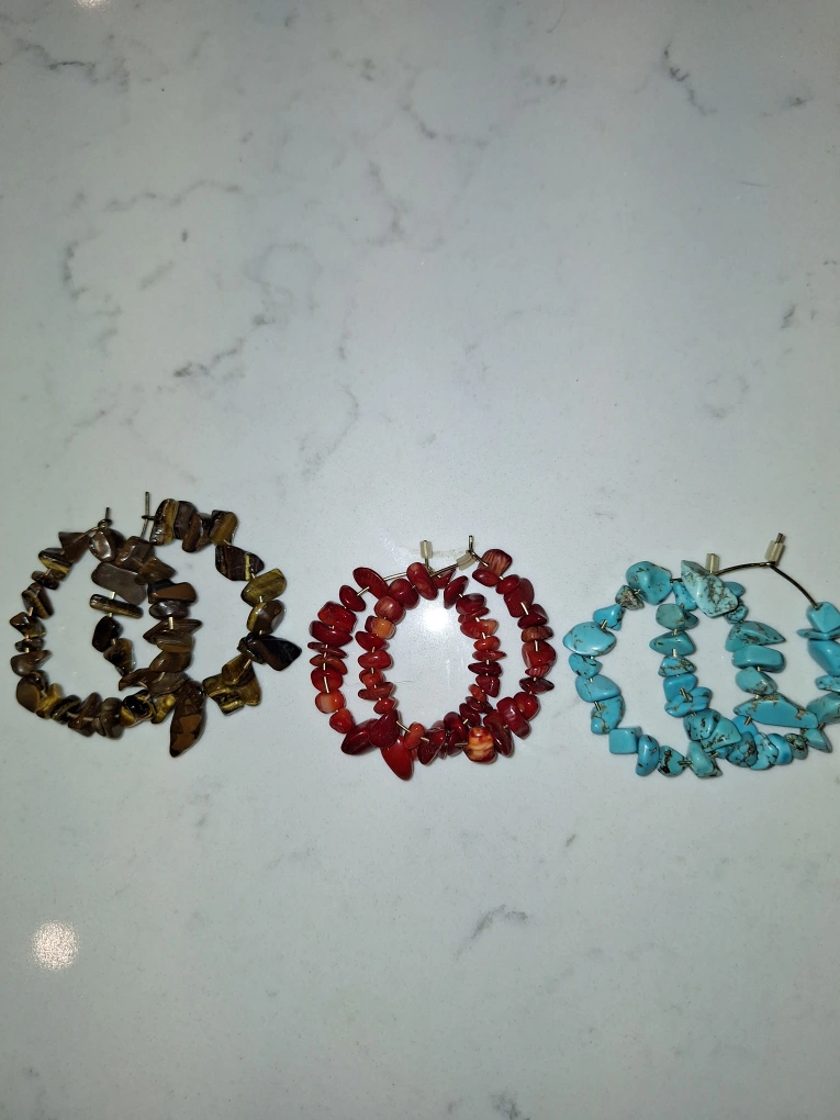 Buy & SellSet of 3 Stone Hoop EarringsSet of 3 Stone Hoop Earrings$5Three pairs of gemstone hoop earrings. Brown tiger eye, red carnelian, and turquoise. Lightweight and stylish.0 chats·0 favorites·9 viewsSELLERsteveSouth Newton24824 reviewsWHERE TO MEETCheck Location