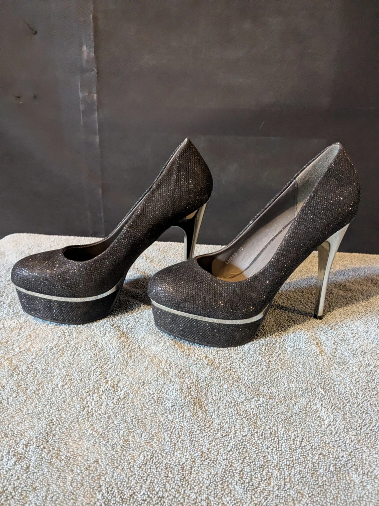 Buy & SellWomen's Black Glitter Platform HeelsWomen's Black Glitter Platform Heels$5Black sparkly platform heels. Silver accents. High heels. Size 9.BrandNianaWHERE TO MEETTim's at Victoria and WoodlawnView MapSELLERverifiedBrendanWaverley861 review0 chats·1 favorites·21 views
