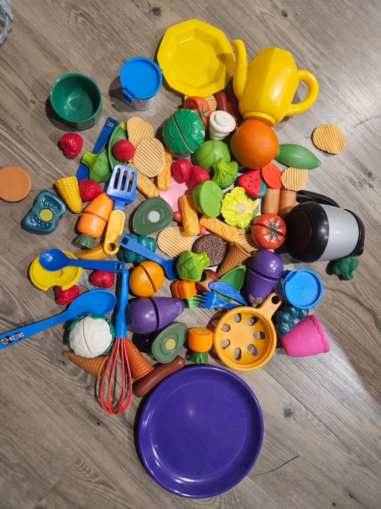 Large Lot of Play Food and Kitchen Utensils