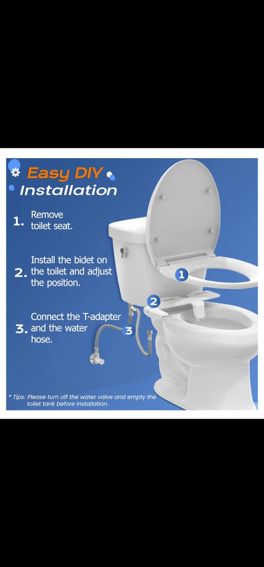 Minimalist bidet for toilet with non-electric dual nozzle. Features frontal and rear wash. Adjustable water pressure. Easy to install. Fresh water bidet toilet seat attachment. $30 cash only pls, ty. Doest fit our unique toilet unfortunately.