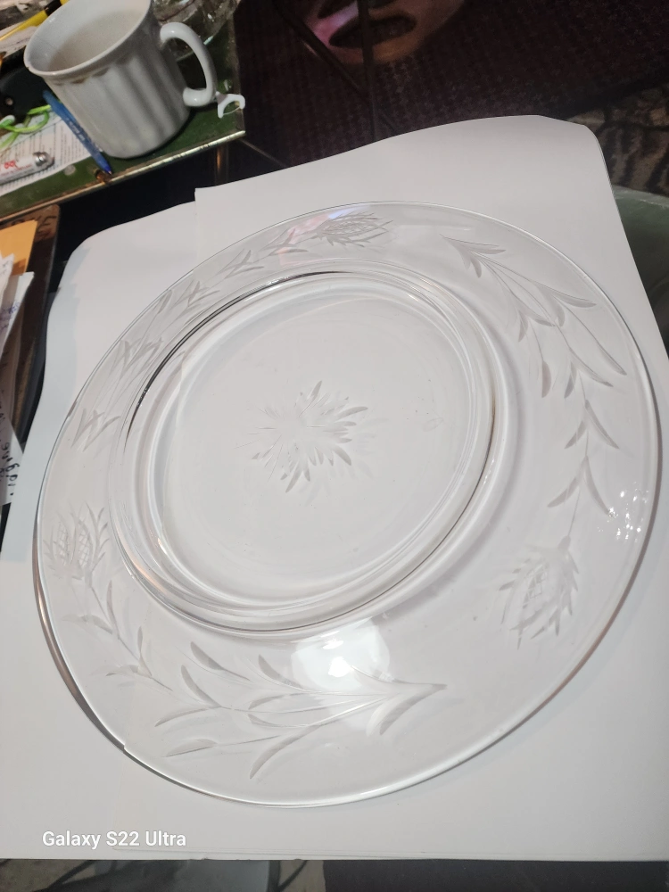 Collectable Vintage Etched Glass Platter no damage