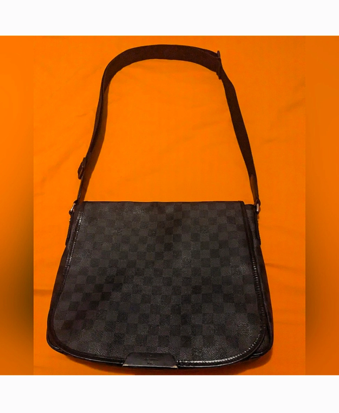 Pre-owned Louis Vuitton messenger bag. Damier Graphite canvas. Features an adjustable shoulder strap and flap closure. Shows some minor wear, as pictured