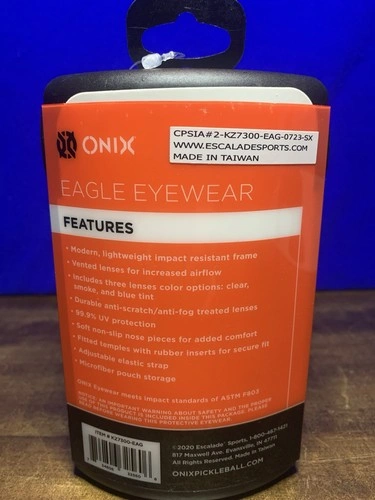 Play with confidence and clarity using ONIX Eagle Protective Eyewear, designed specifically for pickleball players. This is a brand new, never-used item, still in original packaging. Perfect for competitive play, recreational matches, or as a high-quality gift for any pickleball enthusiast.