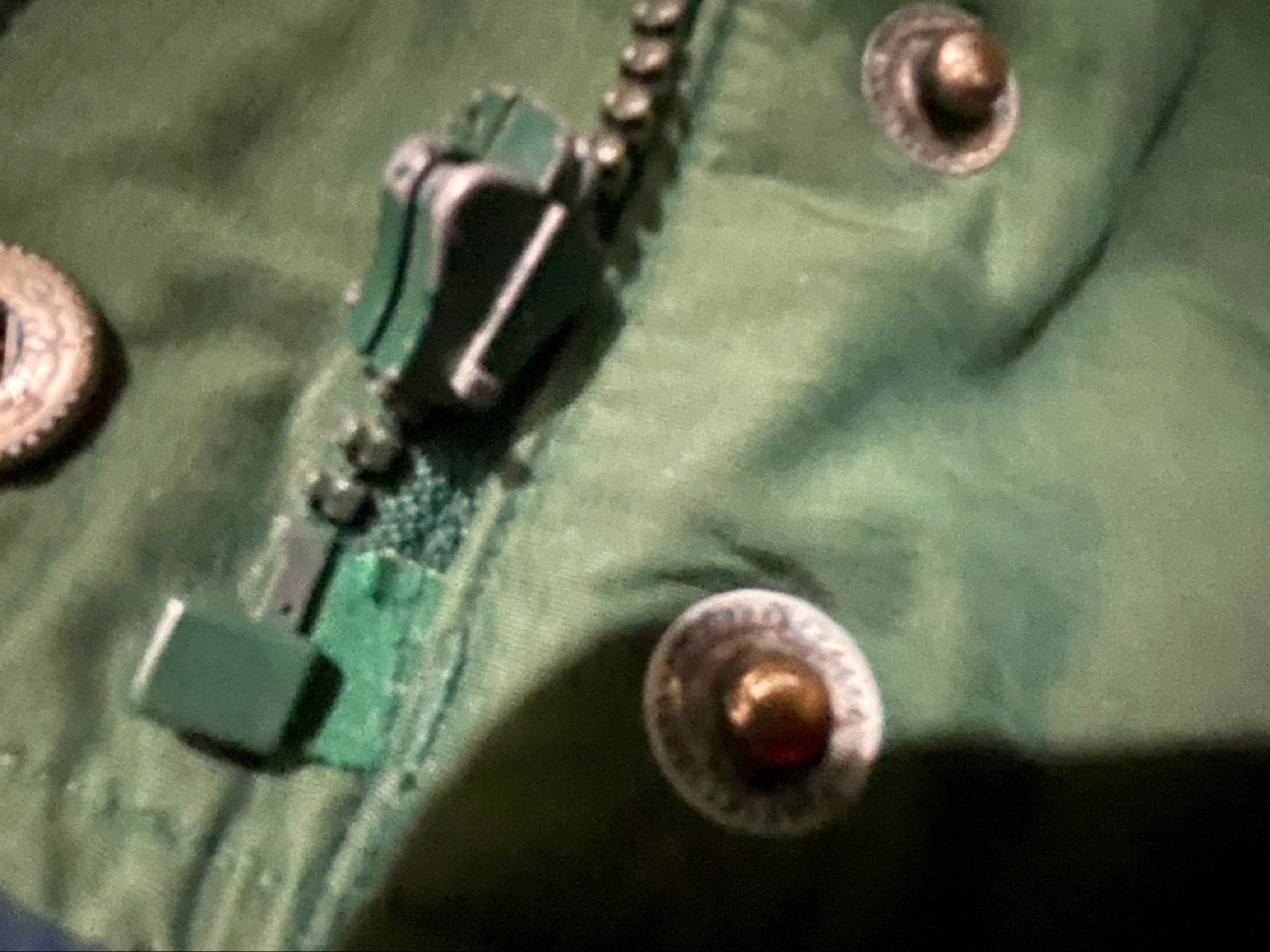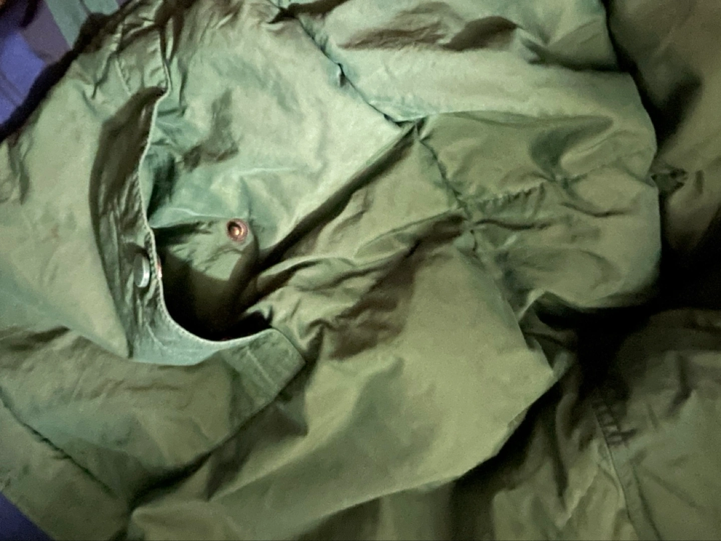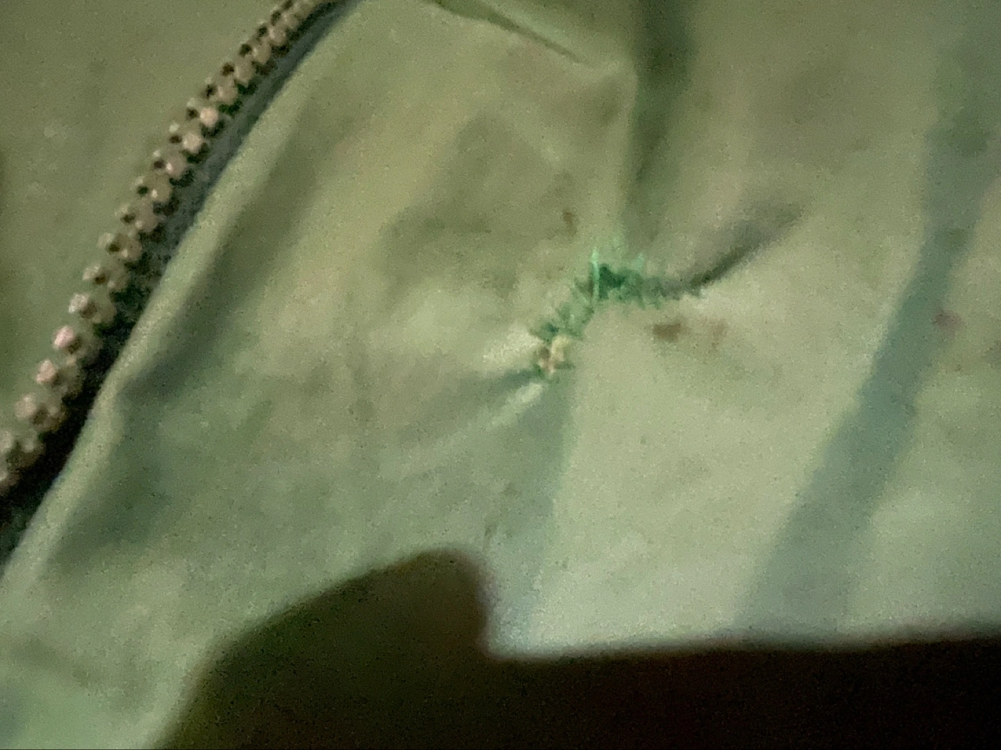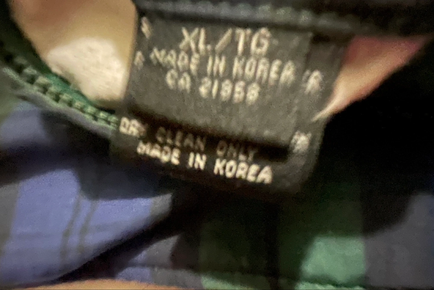 One side dark green, the other a blue and green plaid. XL/TG size. I have washed it works well. There is a small repair and zipper needs the thingy to pull up