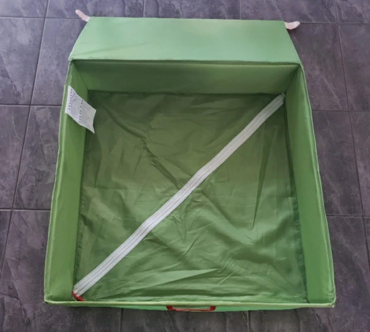 Ikea portable storage box, which can be folded easily. Approximate Dimensions: Length: 23 inches Width: 24 inches Depth: 6 inches