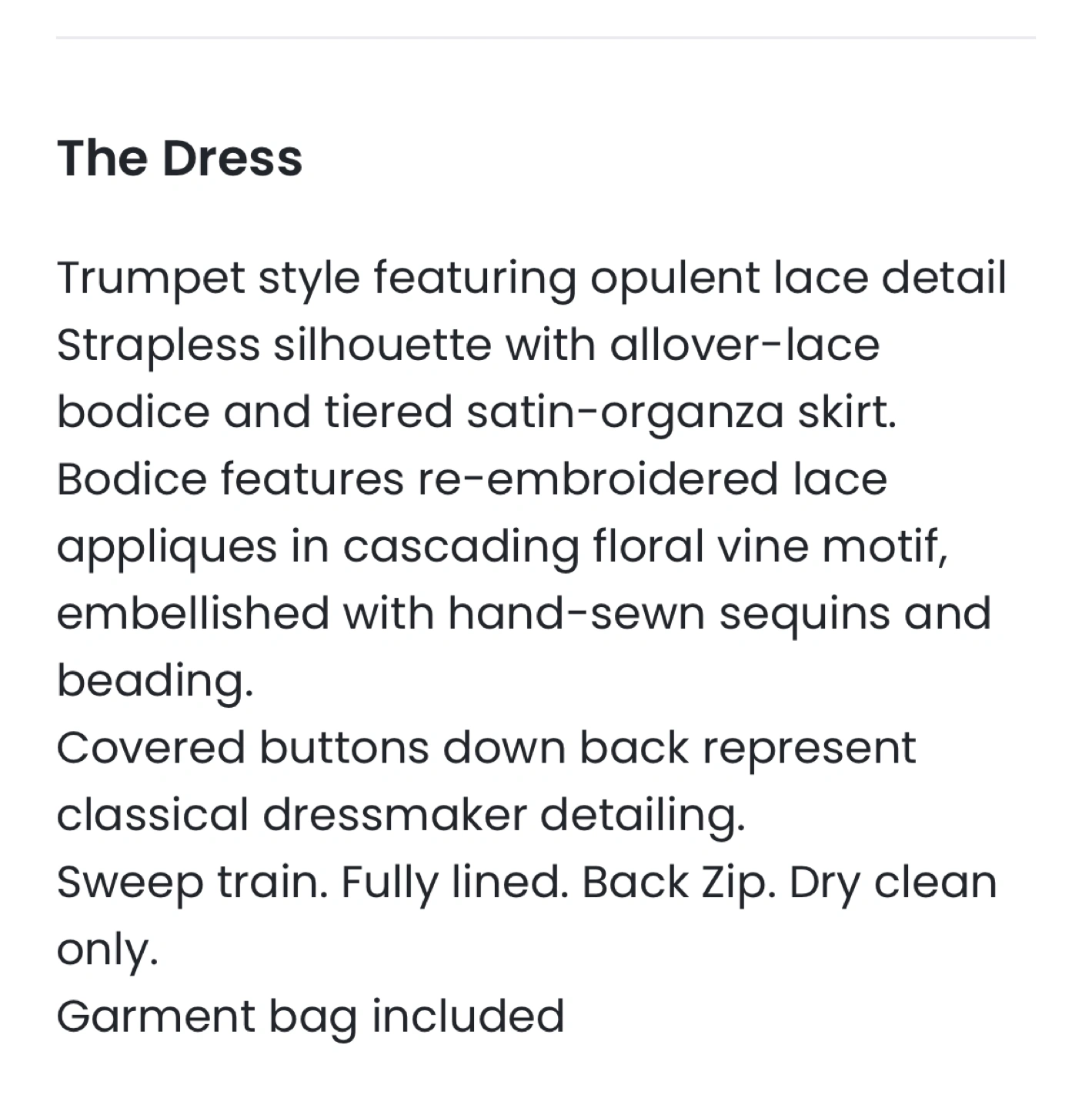 Condition: Really good, with a couple very minor tears on the train that are hard to notice. If you are shorter than me, you might even cut that off during alterations anyway