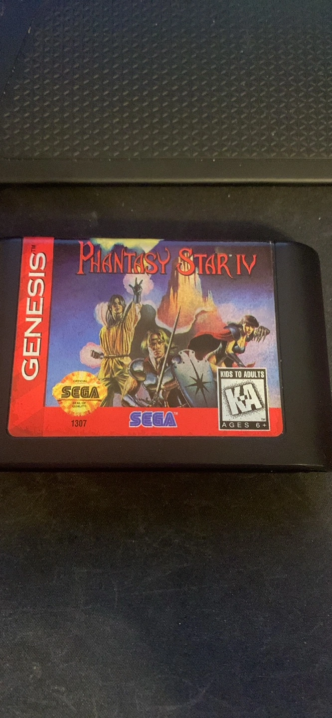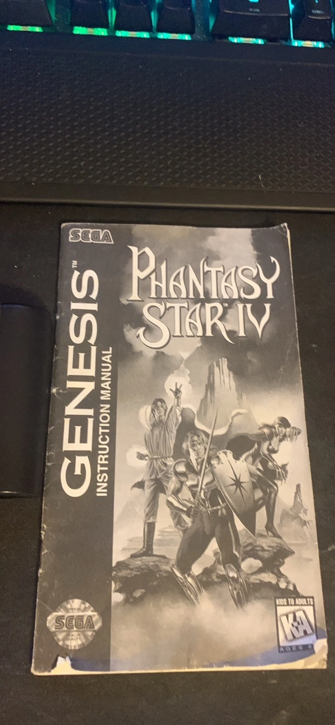 Sega Genesis game Phantasy Star IV. Includes game cartridge, instruction manual, and original box. Classic RPG.