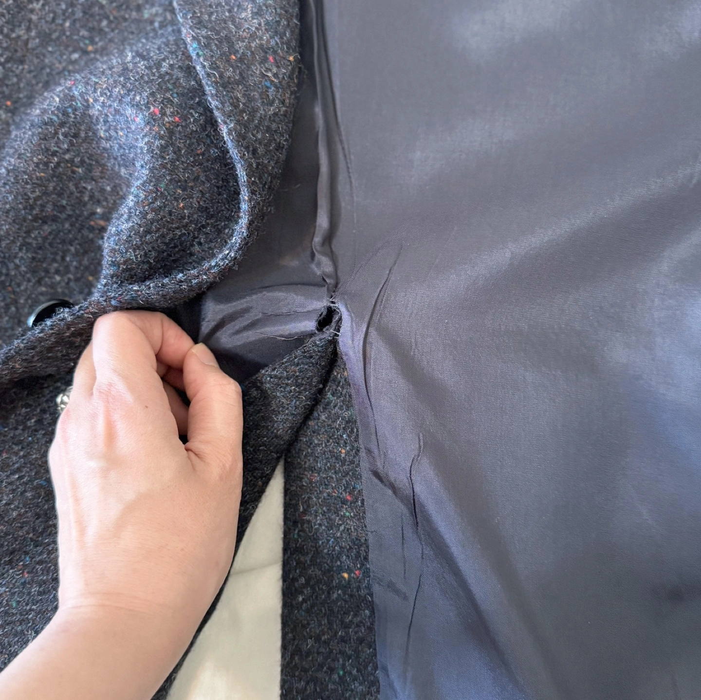 • Slight seam opening on inner lining (see photo) – reflected in price