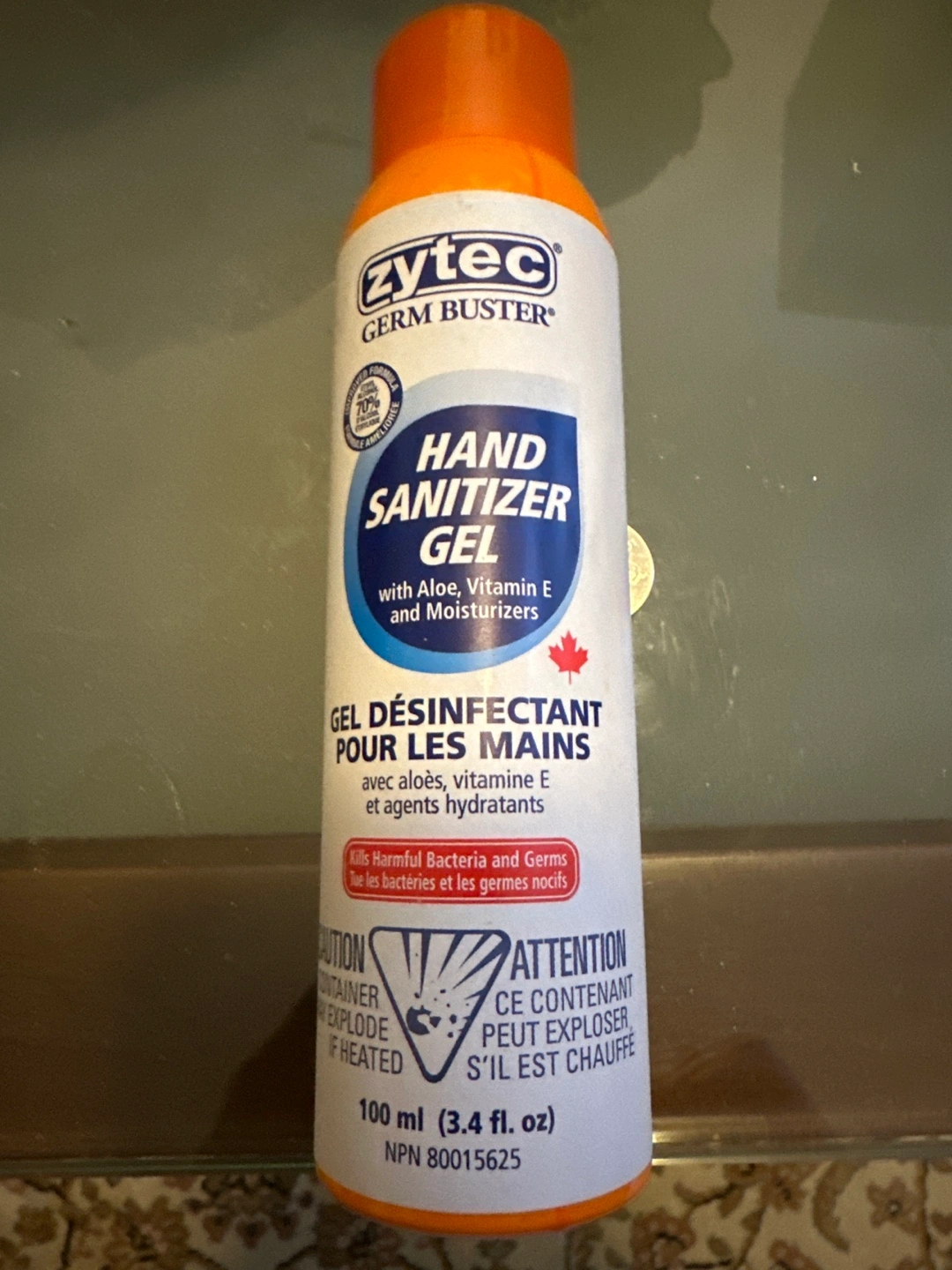 100ml hand sanitizer gel. Contains aloe, vitamin E and moisturizers. Kills harmful bacteria and germs.