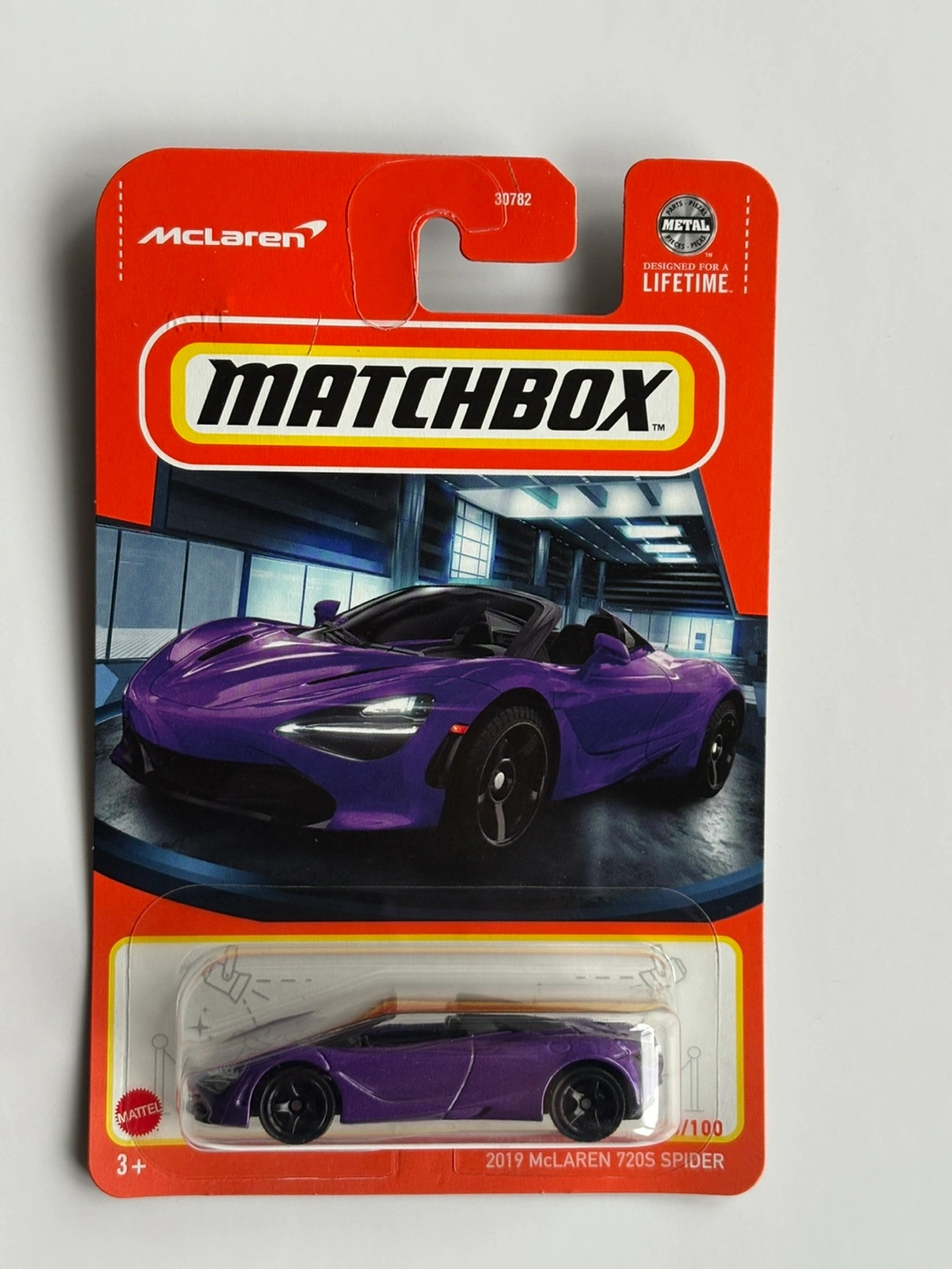123Purple McLaren 720S Spider collectible car. Matchbox brand. New in package. Part of a 100 piece set.