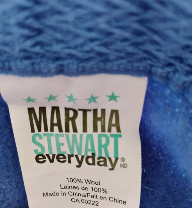 93Martha Stewart 100% wool blanket made in China measures approximately 87 inches l x 60 inches w. Good condition no holes or rips. Blanket has been washed and ready for use. Price is firm. Pick up in Mississauga or downtown Toronto (Union Station).