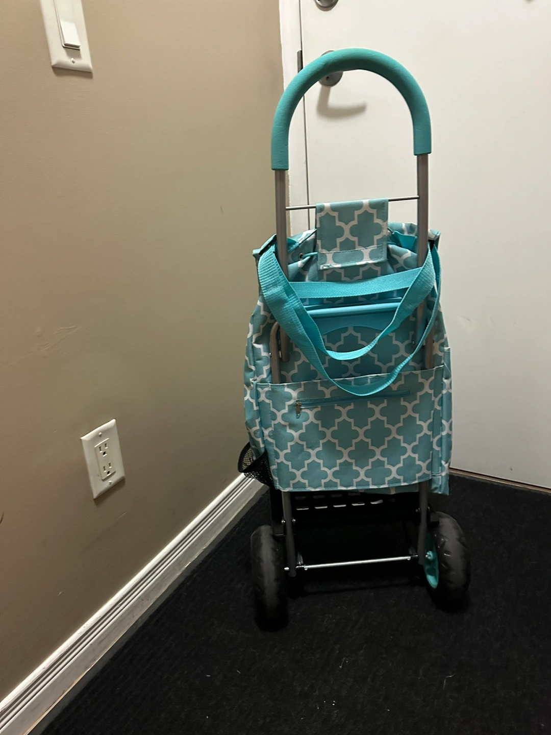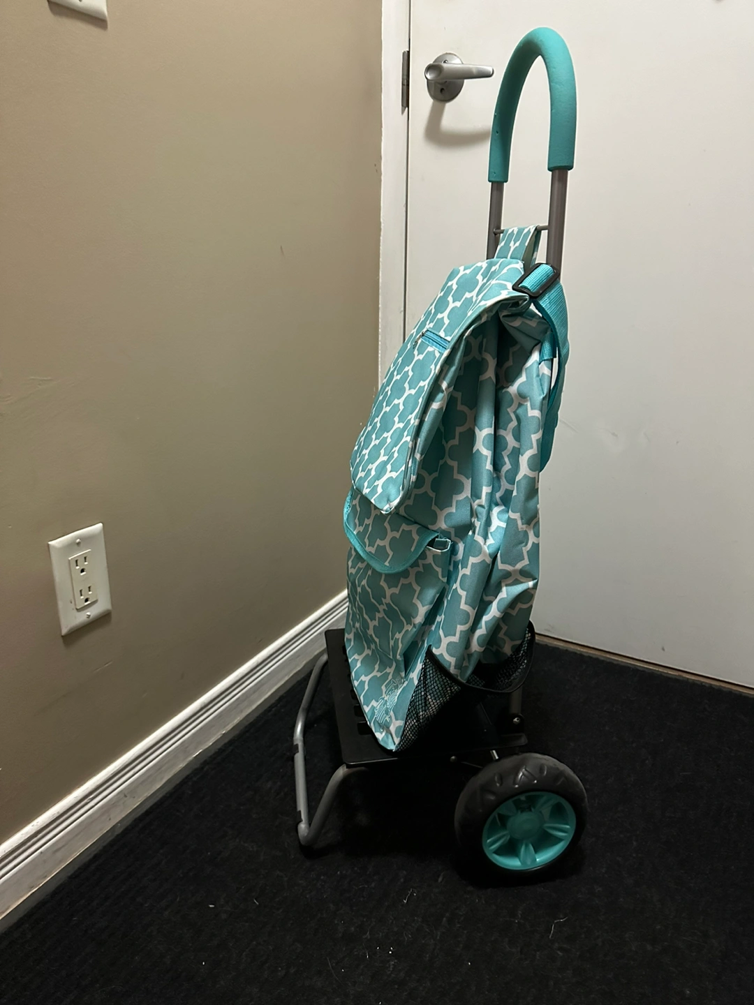 The weatherproof material keeps contents dry from the rain snow and the other forces of nature. This Easy rolling cart is great in aiding seniors on their trips to the market due to the soft ergonomic cushion handle which reduces the stress on the joints.