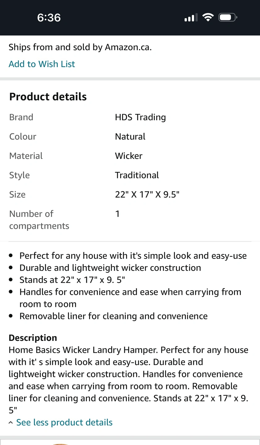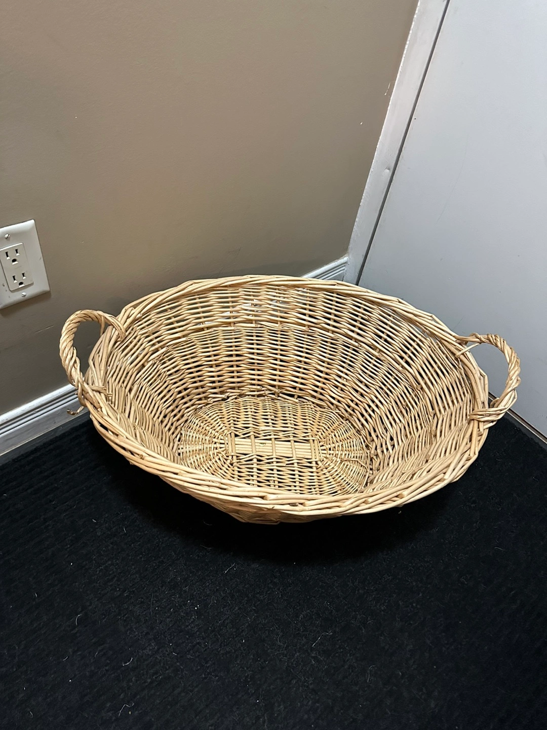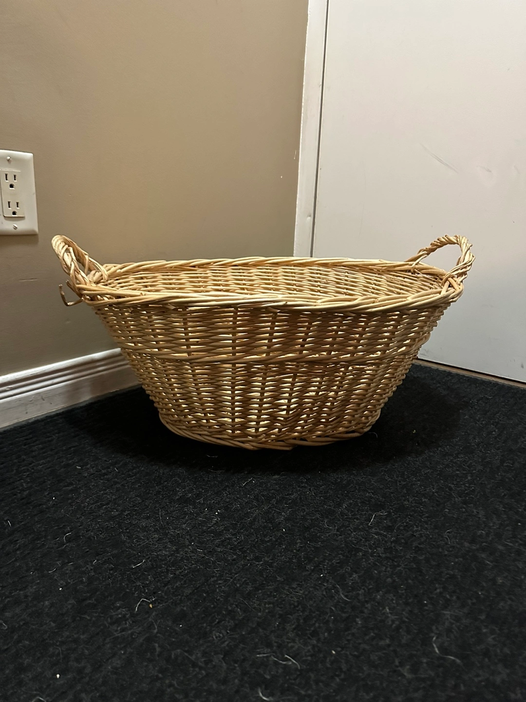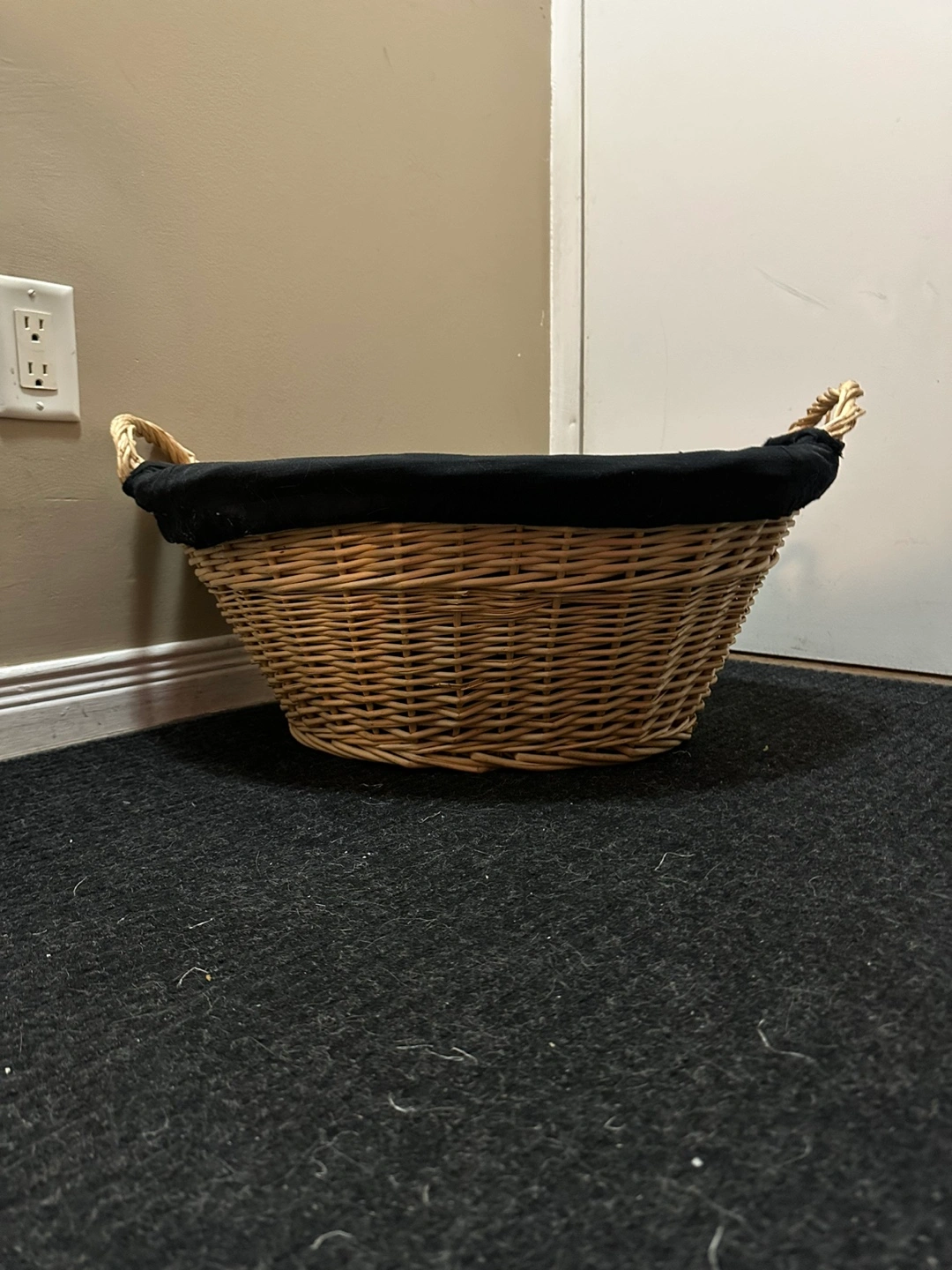 Natural wicker coloured basket with removable black cloth liner. Similar one on Amazon retails for $86. Same size basket. See last 2 pictures.