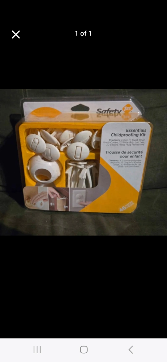 Childproofing kit. Includes door knob covers, latches, and plug protectors. 46 pieces total. New in package.