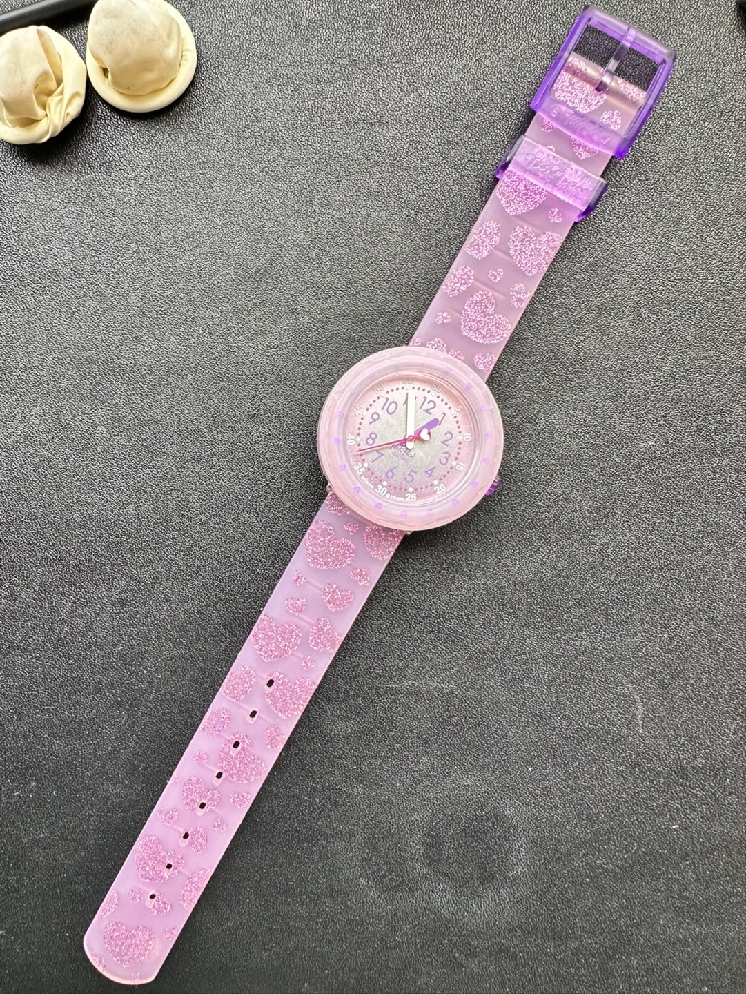 Comes with a rotating bezel with hearts on it and very lightweight. Swiss made by Swatch. Retail price $90