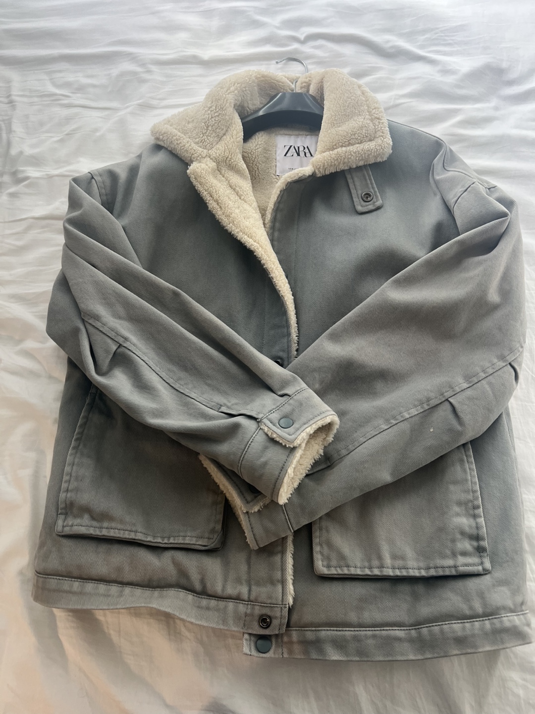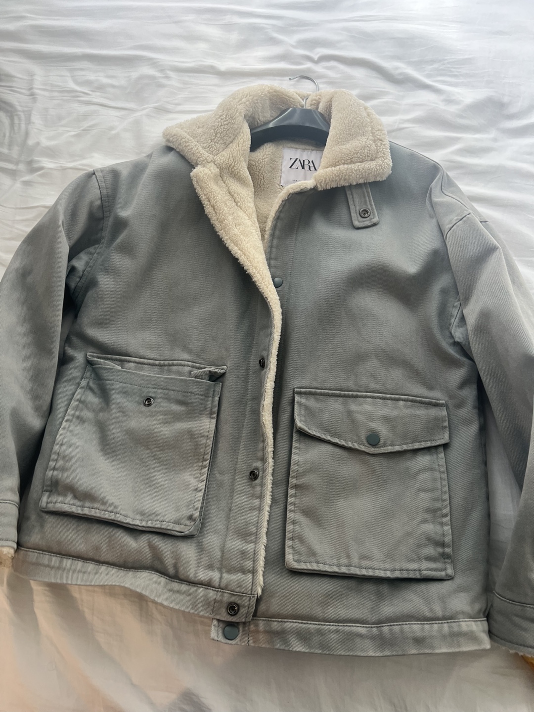 1 / 21 / 2Buy & SellZara Grey Sherpa Lined JacketZara Grey Sherpa Lined Jacket$25Grey utility jacket. Sherpa lined collar and cuffs. Two front pockets. Button closure.SizeMBrandZaraWHERE TO MEETCheck LocationView MapSELLERverifiedJamesEntertainment District1114 reviews1 chats·0 favorites·44 viewsSEND CHAT TO SELLERHi James! I’m interested in your listing.Hi James! I’m interested in your listing.Get the Karrot app to chatSign In to chat