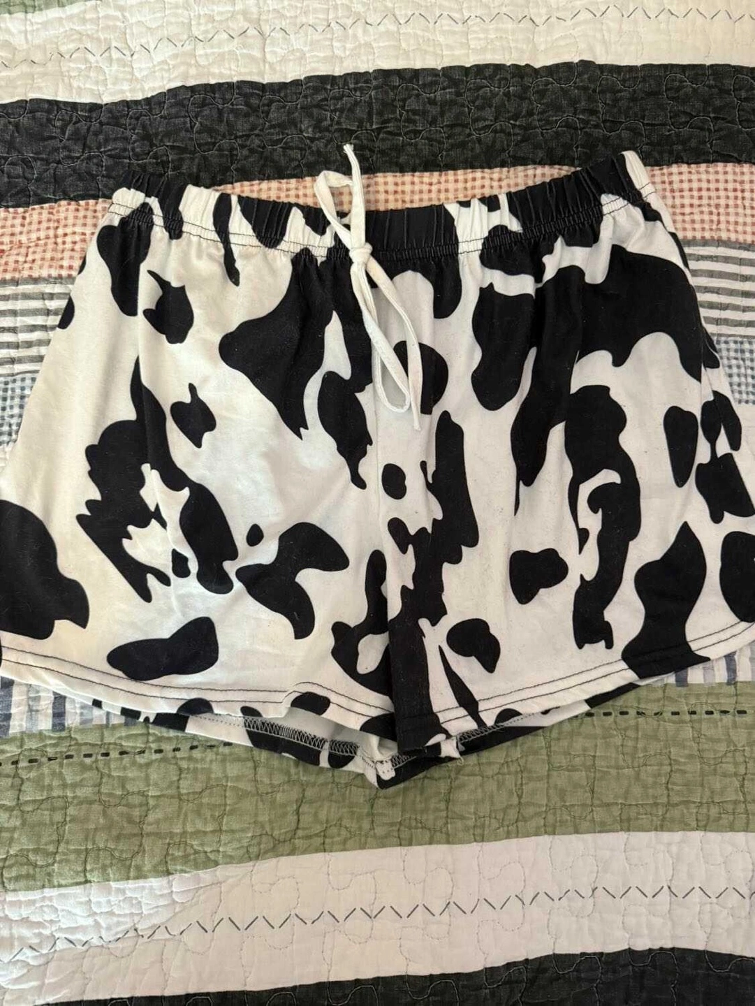 94Black and white cow print shorts. Drawstring waist. Relaxed fit.