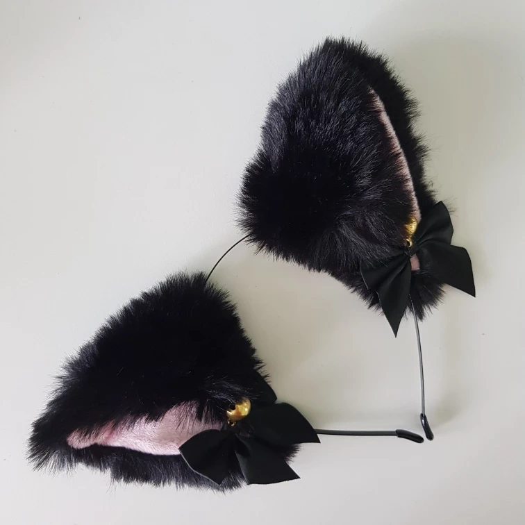 1000+Fluffy black cat ears headband. Pink inner ears. Black bows and gold bells. Perfect for cosplay or adding a touch of whimsy. Cash only Pickup near or at Cornell Public Library, or Delivery to Markham, Pickering, or Stouffville