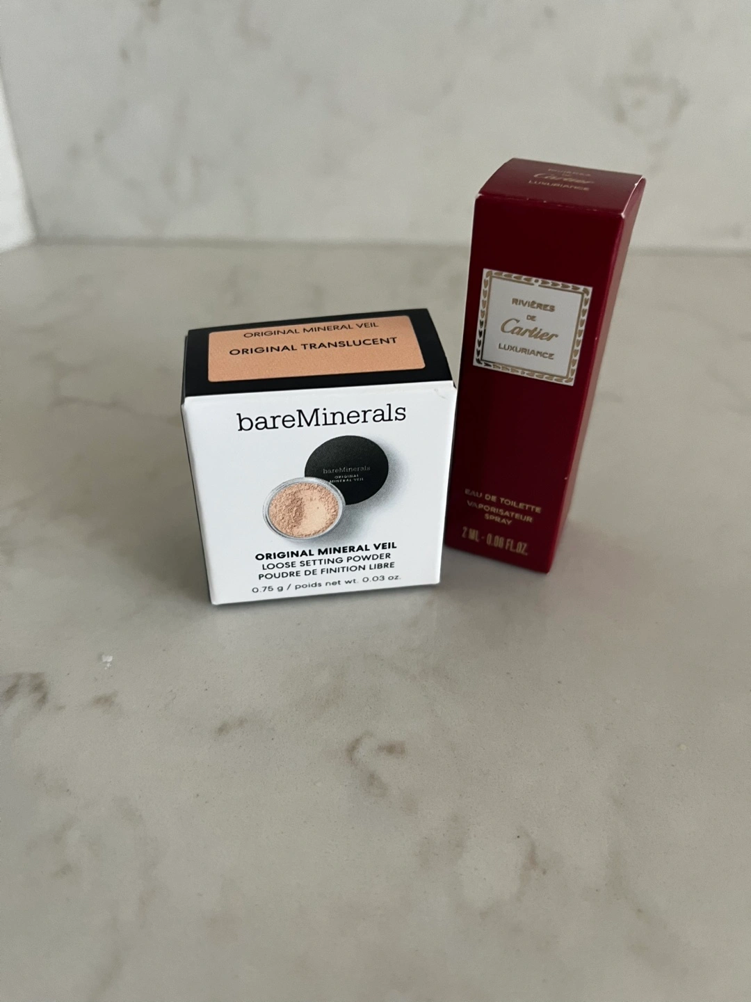 bareMinerals Original Mineral Veil translucent loose setting powder. Cartier Rivieres de Cartier Eau de Toilette. Both are unopened.
