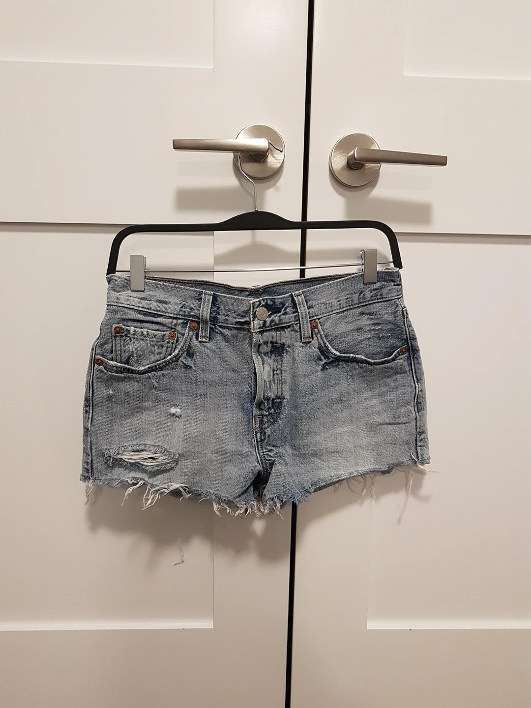 Selling these Levi's denim shorts. They are in perfect condition with no flaws or damage and has barely been worn. They are a size 26 and fits like a 2 - 4.